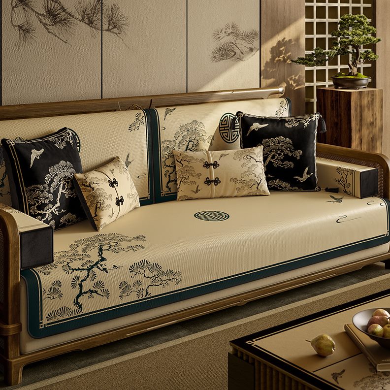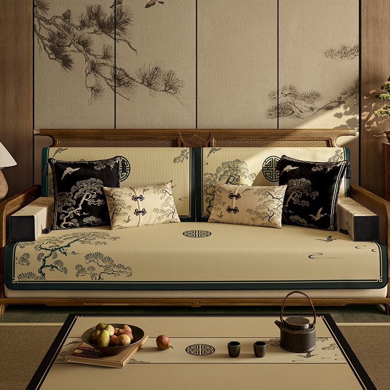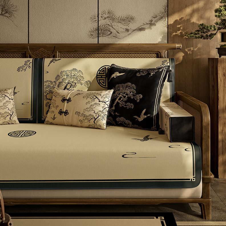 感巾坐垫凉喜靠背新中式实木沙发夏季冰丝搭盖布凉垫即松鹤沙发垫