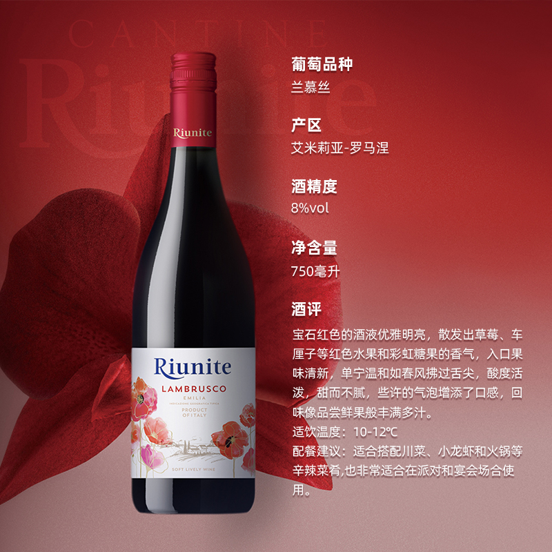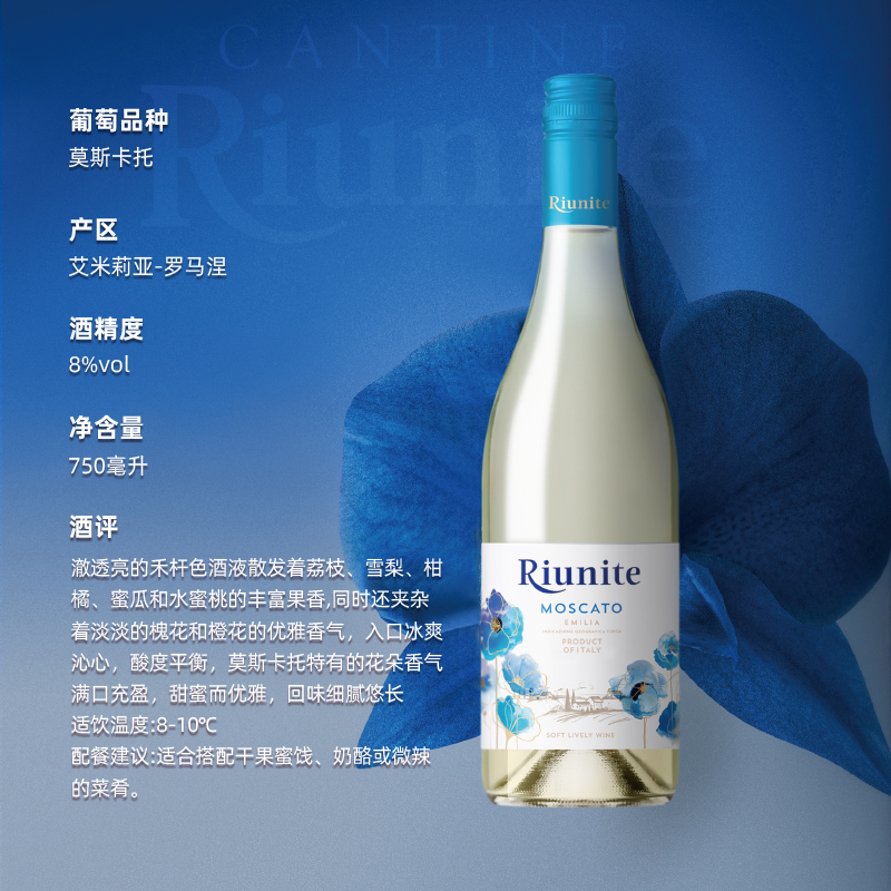 意大利优尼特花语甜型起泡葡萄酒原瓶进口红酒莫斯卡托甜白/甜红