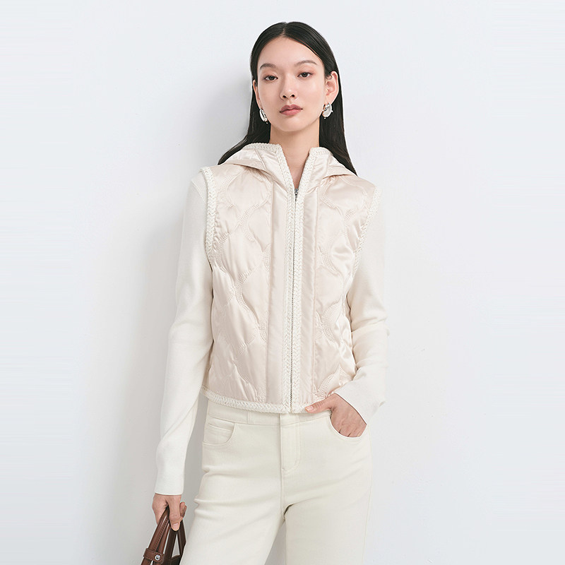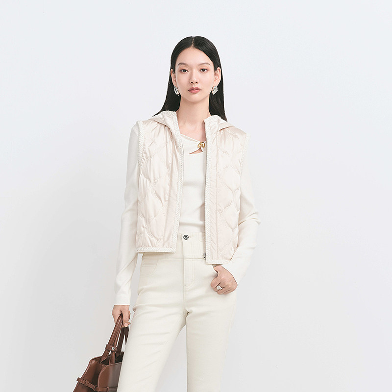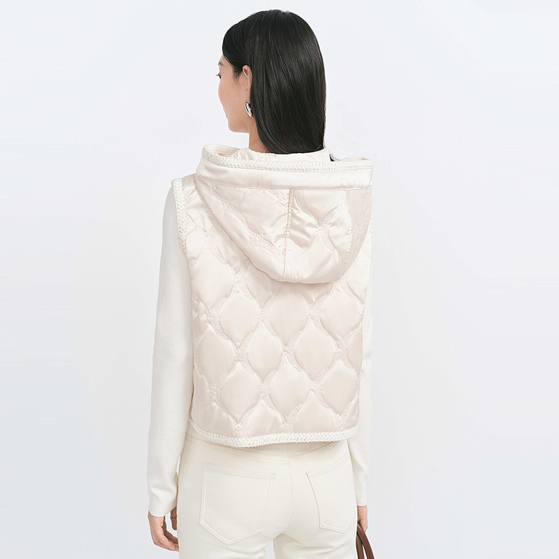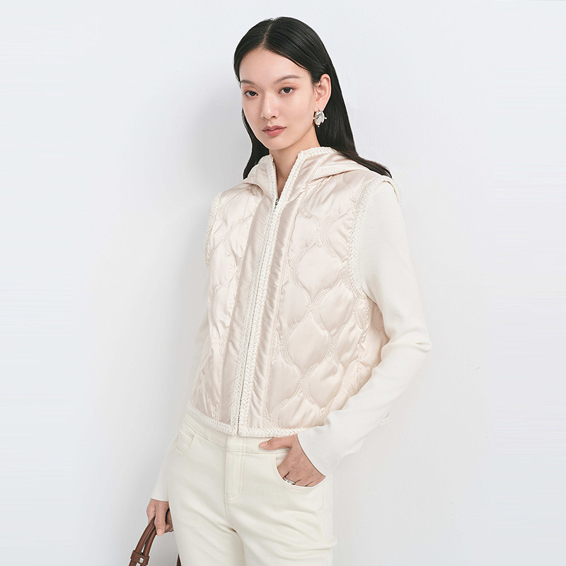 【商场同款】HPLY荷比俪冬季新款女绣花连帽香风马甲背心