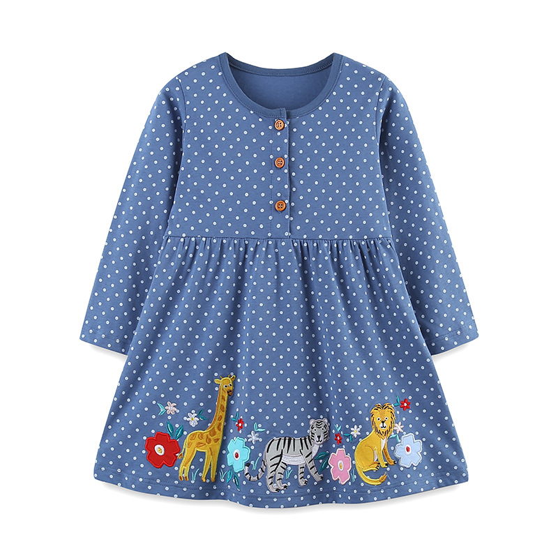 欧美风格女童连衣裙秋季新款动物刺绣儿童公主裙时尚斑点长袖