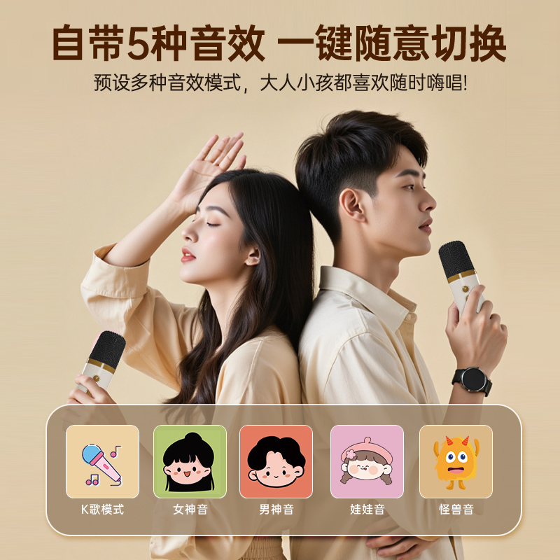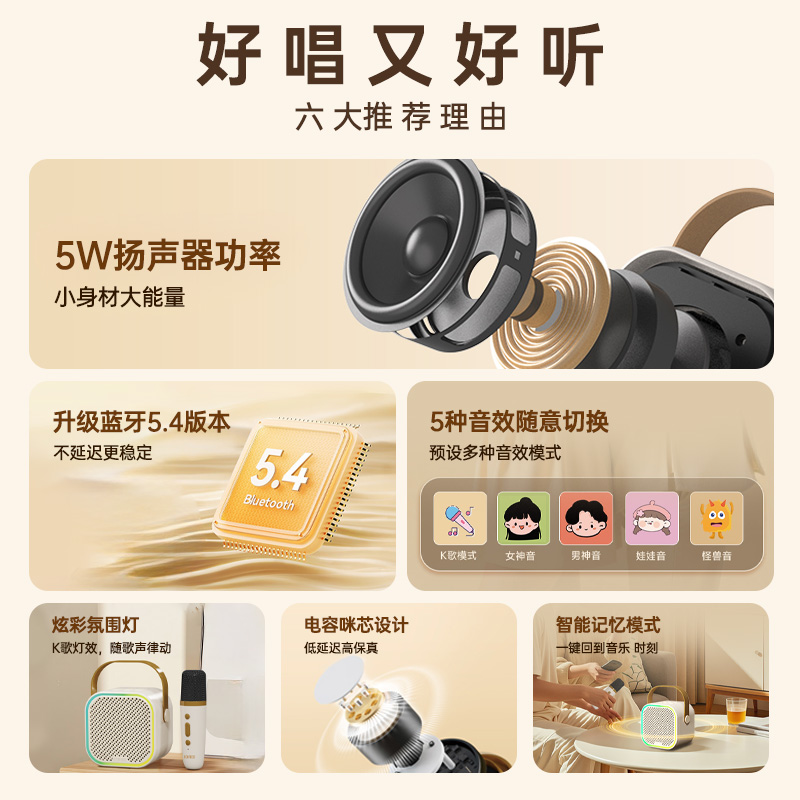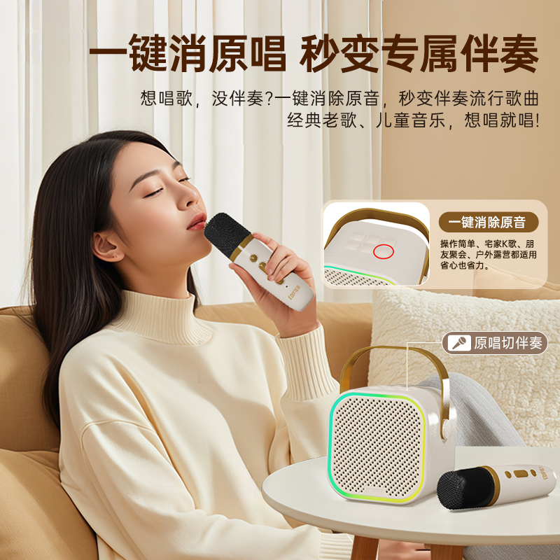漫步者K歌精灵Q1蓝牙音响话筒一体麦克风儿童家用音箱唱歌KTV无线