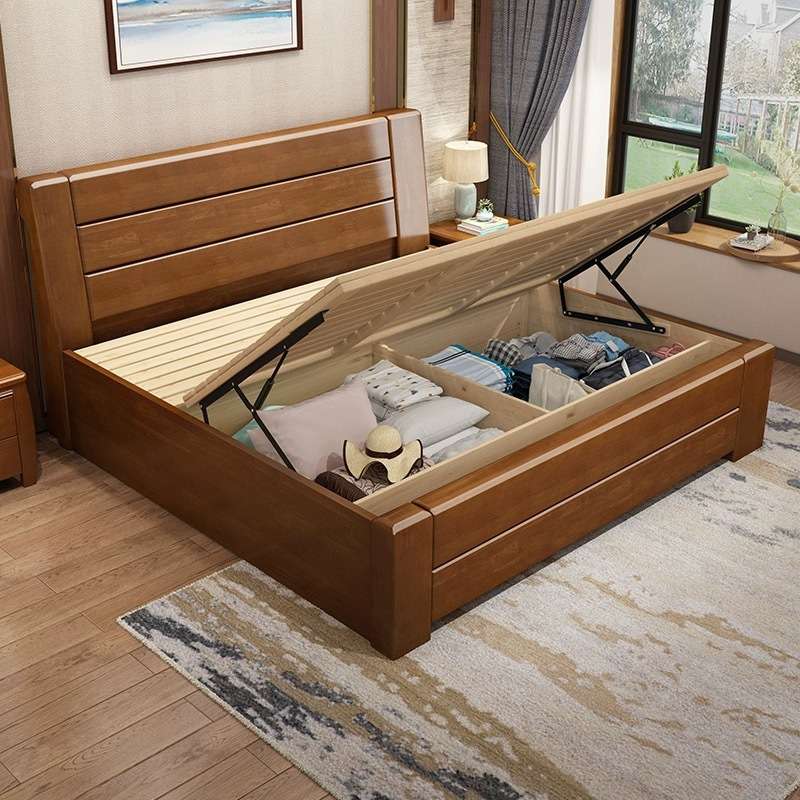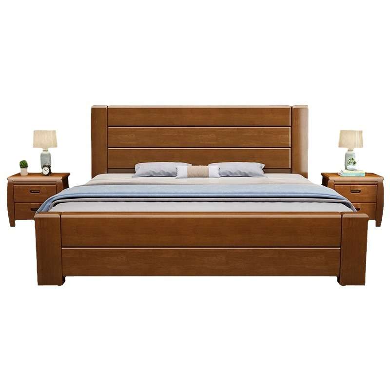 实木床橡胶木家用简约中式实木床家具单双人床1.5米床1.8米实木大