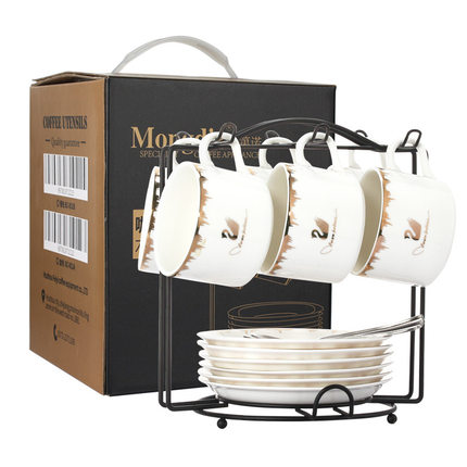 Mongdio欧式陶瓷杯咖啡杯套装 家用咖啡杯6件 创意简约咖啡杯碟勺