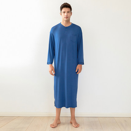 高密爽滑莫代尔棉一体式睡衣男薄款春夏大码连体男士睡裙子睡袍男