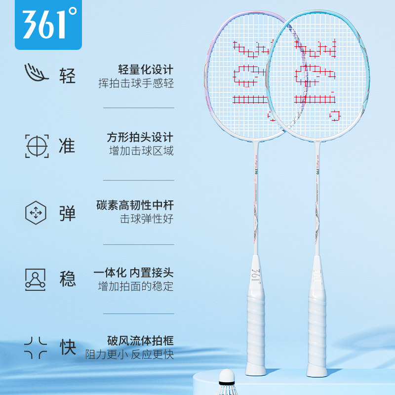 361度羽毛球拍正品旗舰店官方碳素纤维超轻耐用型专业单双拍套装