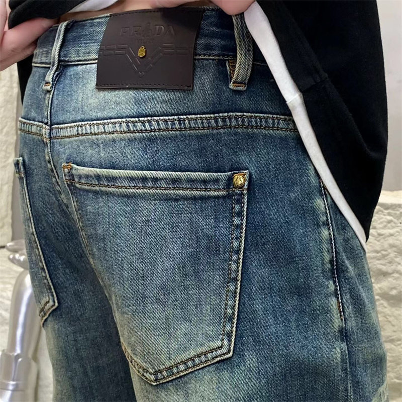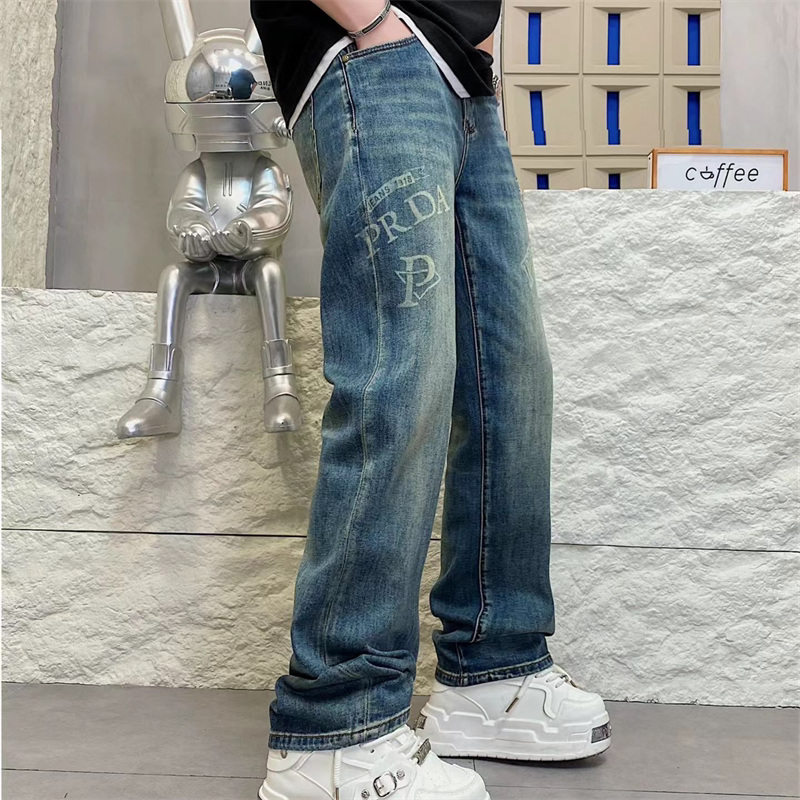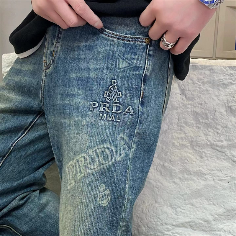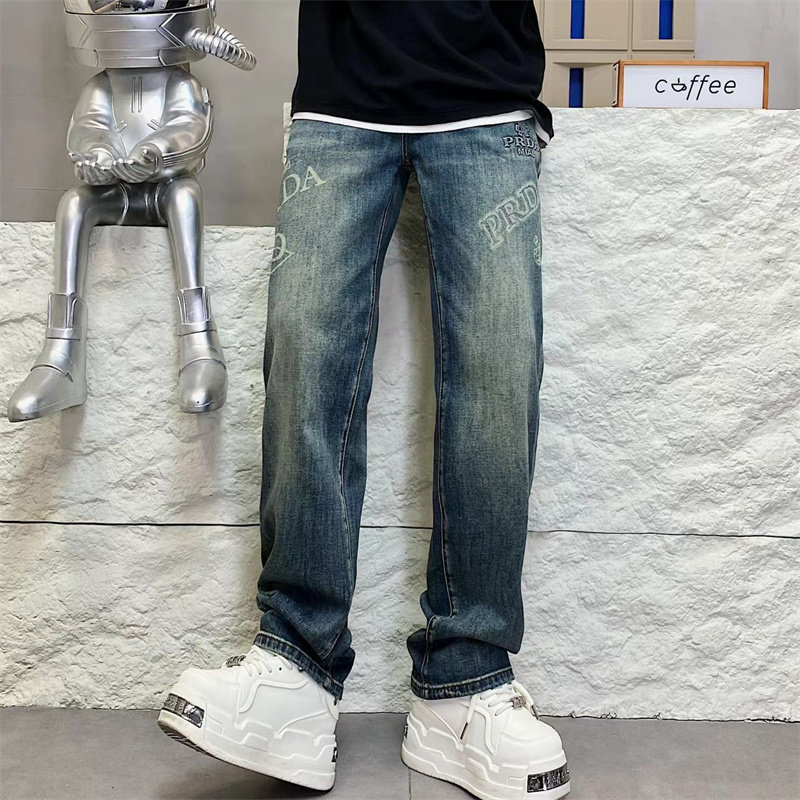 轻奢潮牌2026新款男士直筒阔腿裤牛仔裤夏季四面弹纯色简单刺绣潮