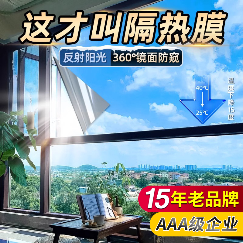 阳台玻璃防晒隔热膜家用窗户贴纸遮光挡板单透膜低楼层遮太阳神器