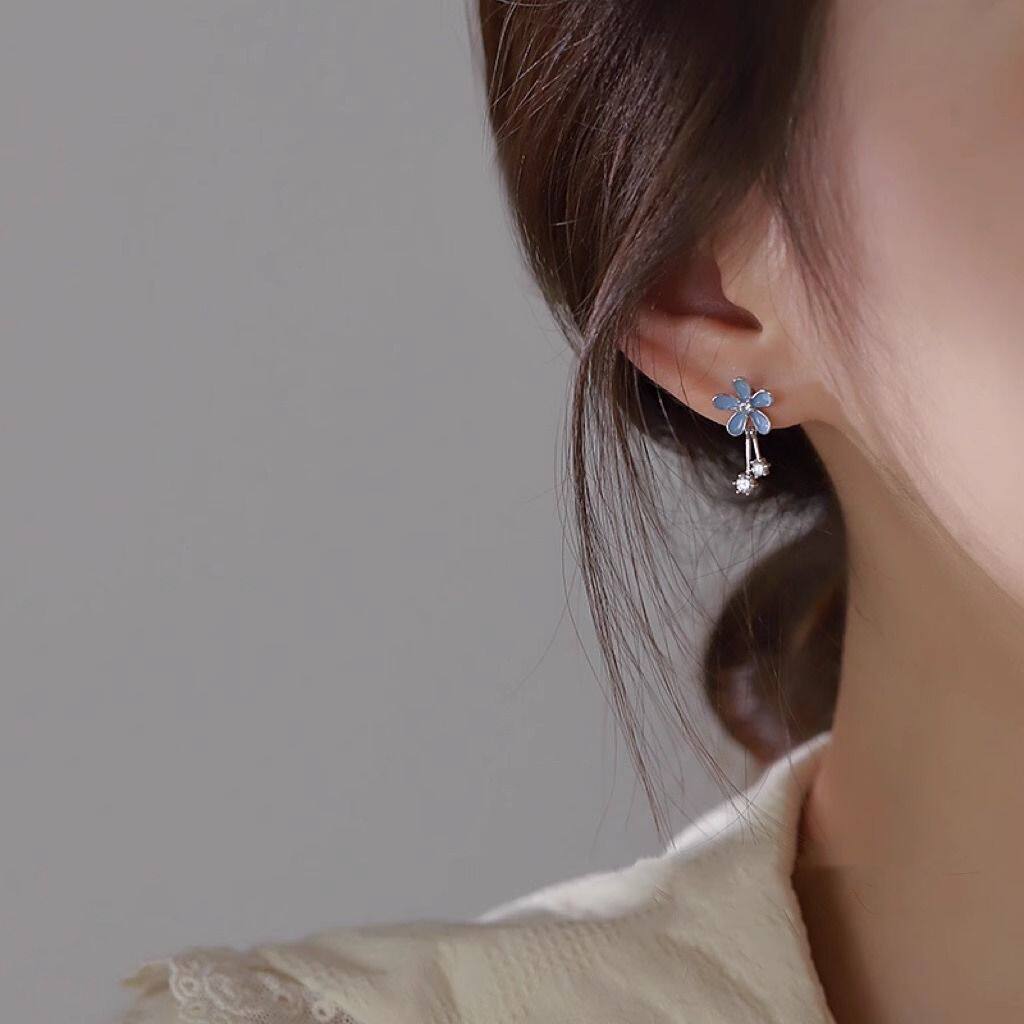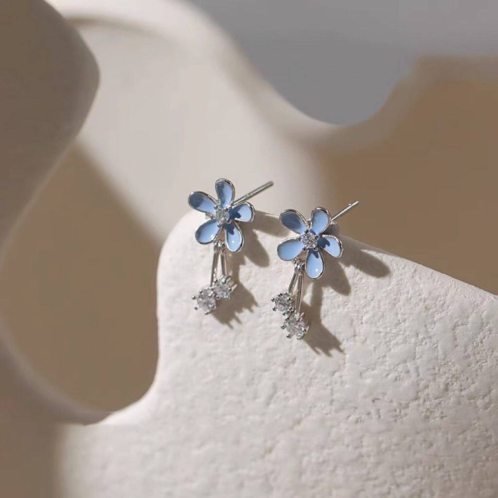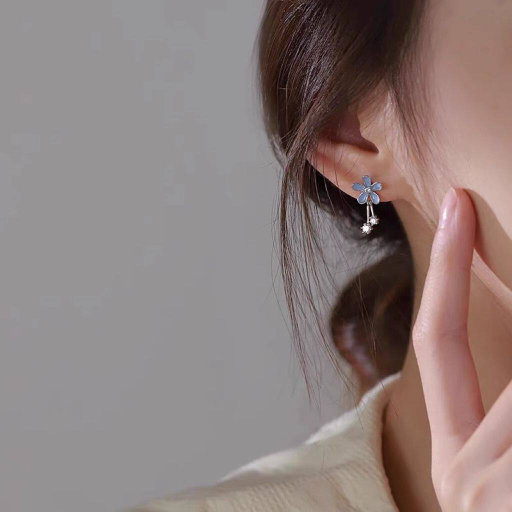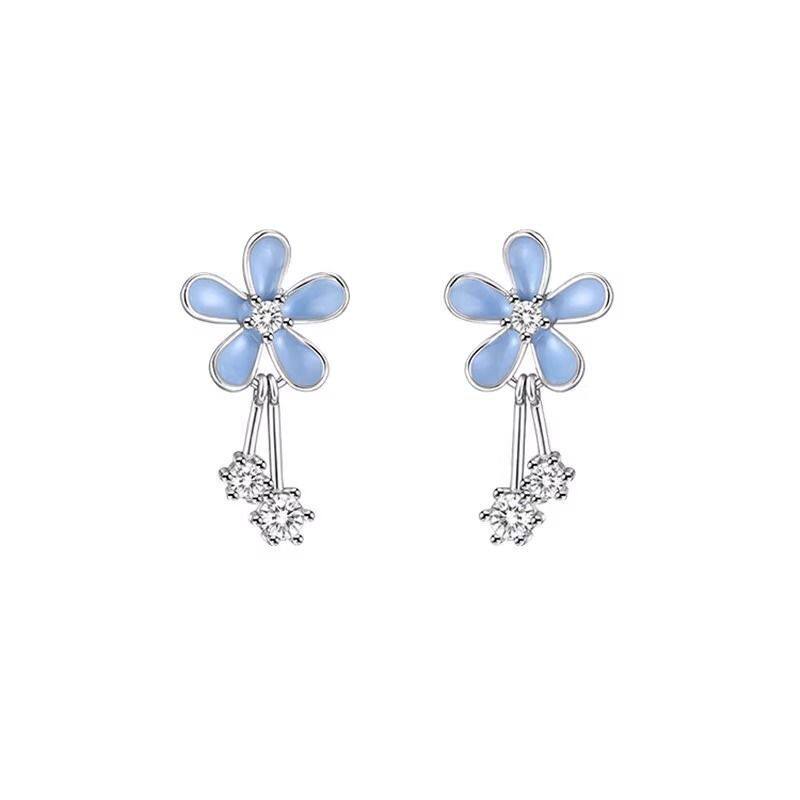 日韩耳钉女时尚甜美灰蓝色花朵耳坠小众设计轻奢风ins耳饰