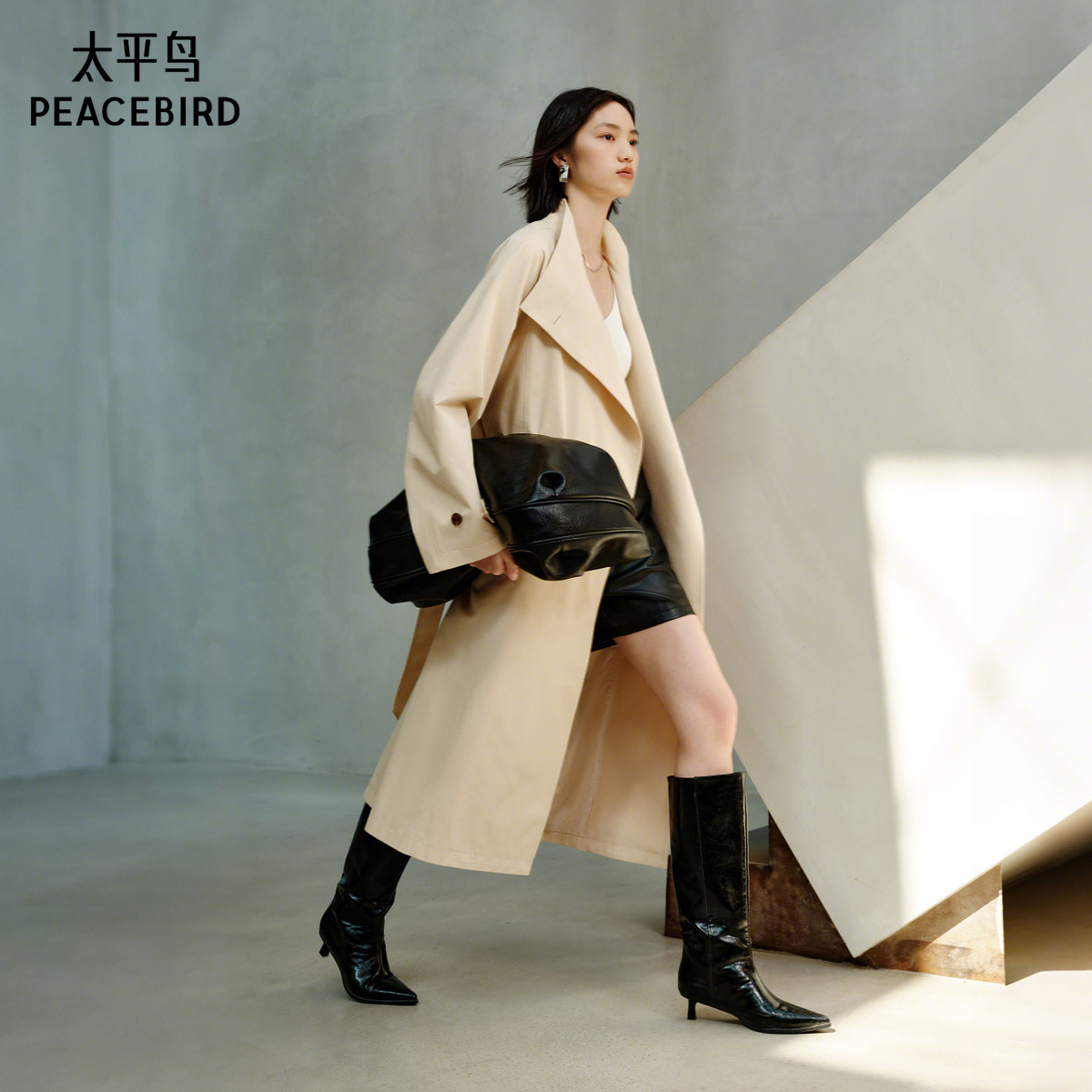 【商场同款】太平鸟廓系风衣25通勤长款杏仁奶色风衣女A1BEF3527