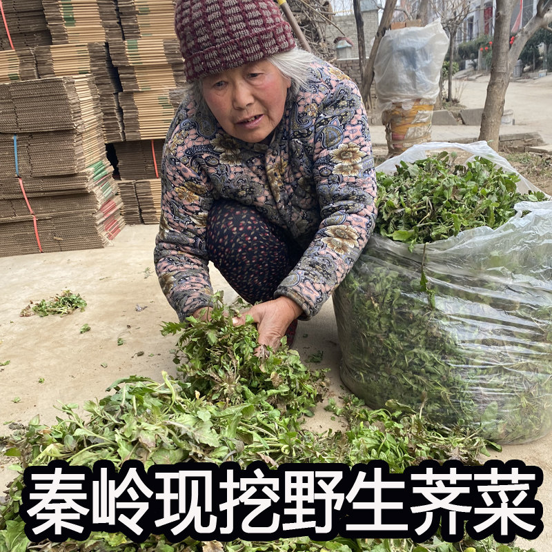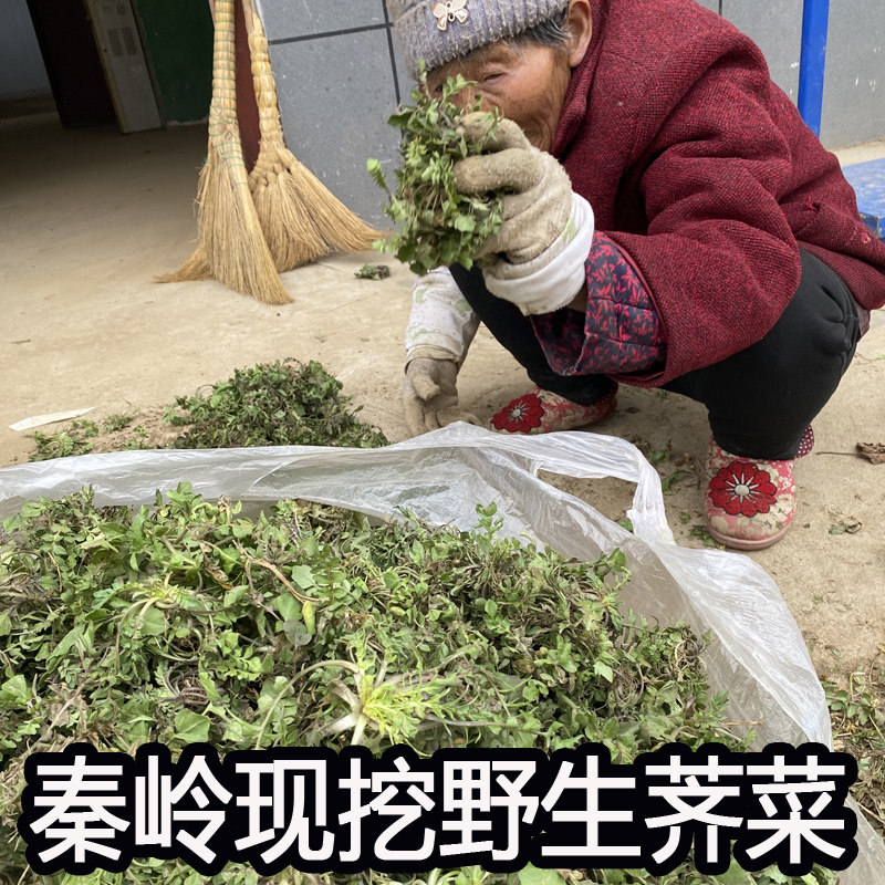 陕西秦岭野生荠菜现挖新鲜野菜包邮荠荠菜地菜饺子馅冷冻蔬菜商用