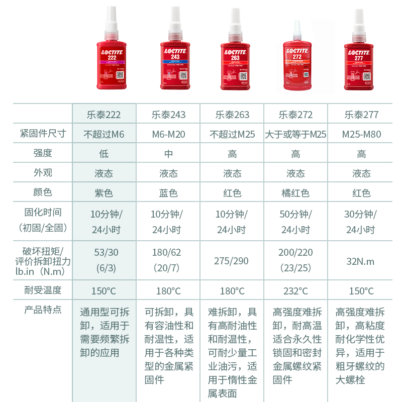德国汉高Loctite乐泰胶水243螺纹锁固剂螺丝胶222 241 242 248 263 268 270 271 272 277 290耐高温厌氧胶水