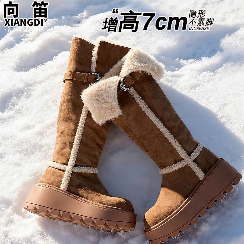 桑坡羊皮毛一体高筒雪地靴女冬季加绒加厚保暖棉靴厚底增高长筒靴