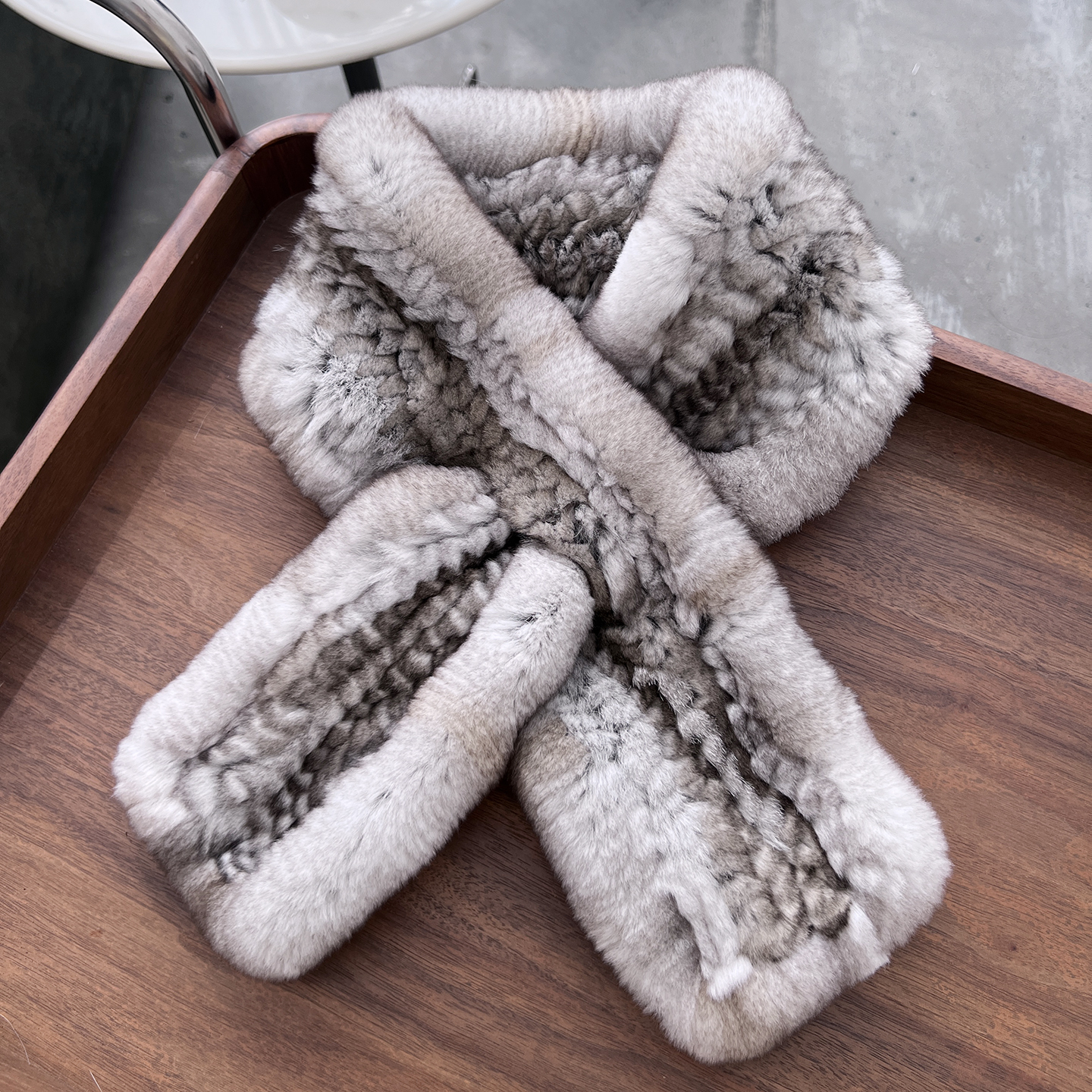 龙猫青紫蓝色獭兔毛编织皮草围巾
