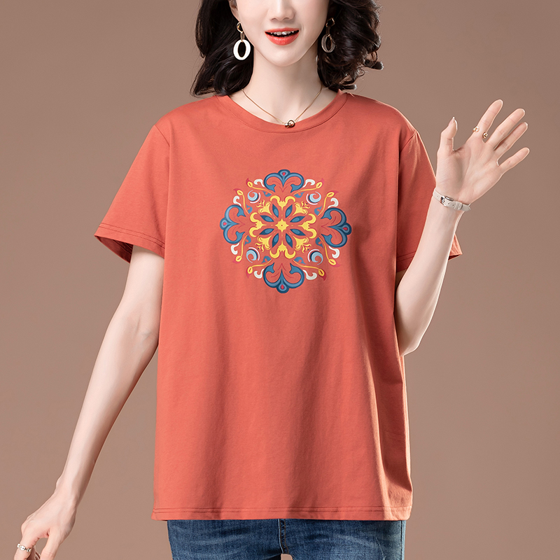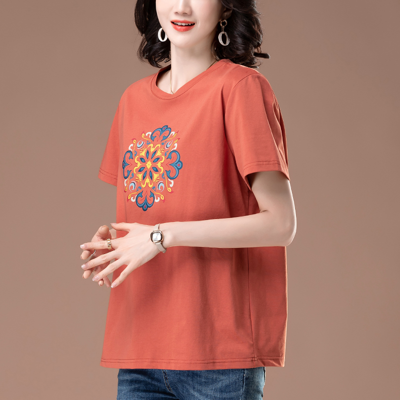 加肥加大码短袖t恤女夏装新款宽松中年妈妈国潮印花显瘦半袖体恤