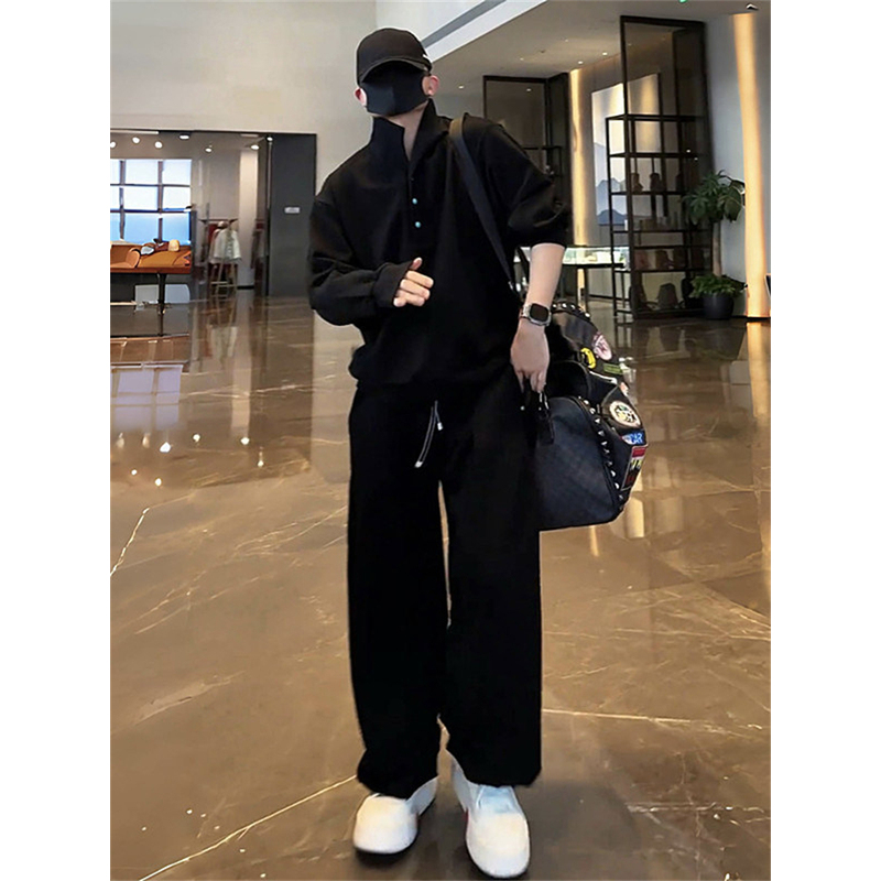 潮牌高端polo领设计卫衣套装男春秋季2025新款阔腿长裤休闲两件套