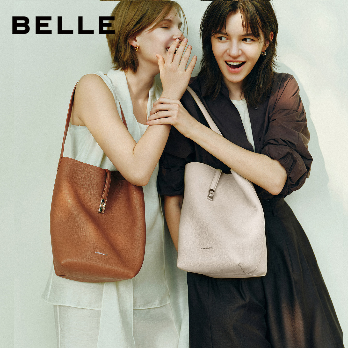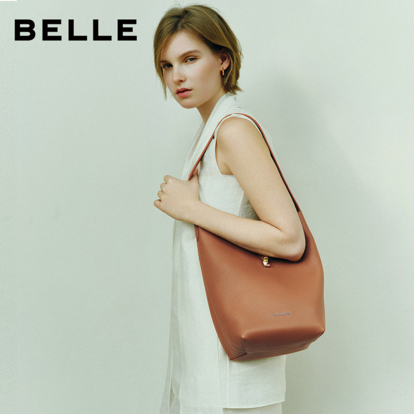 百丽包包女2026春新商场同款简约质感通勤牛皮单肩水桶包BL885BX6