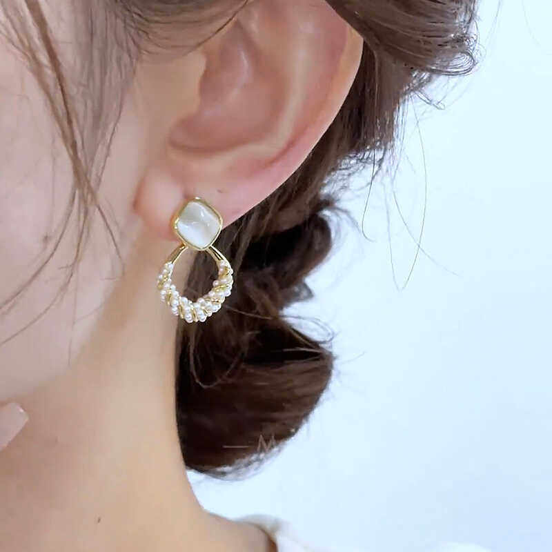 轻奢时尚猫眼石几何菱形珍珠耳钉女小众简约气质百搭耳环银针耳饰