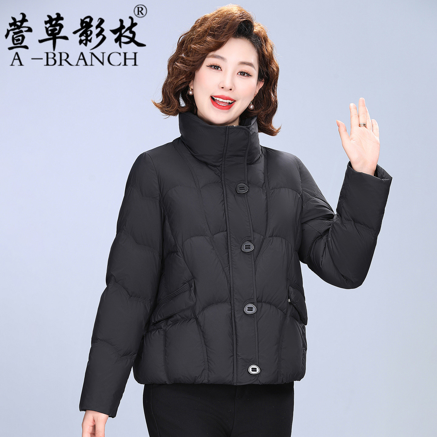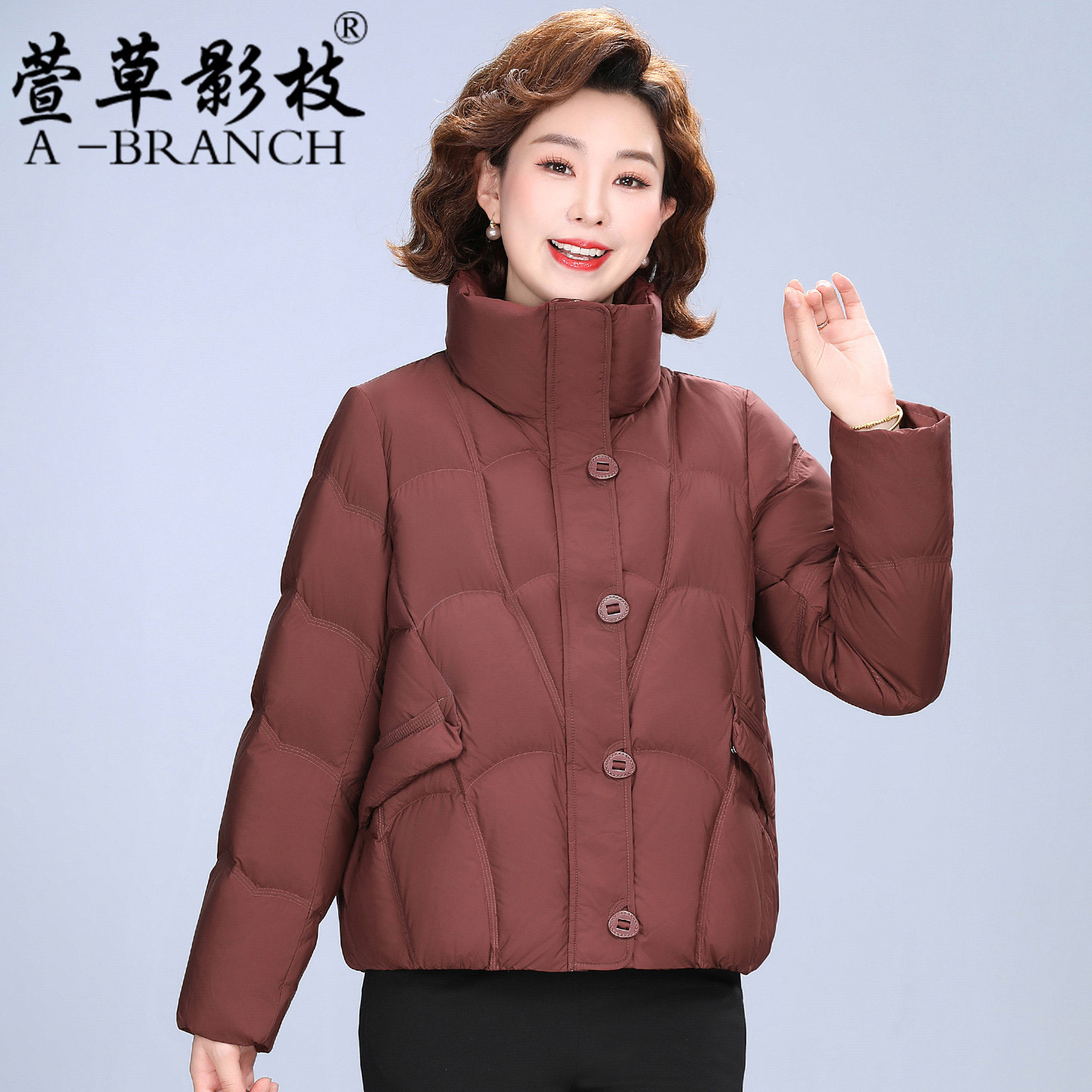 50多岁妈妈短款羽绒服2025新款中年女保暖白鸭绒中老年秋冬装外套