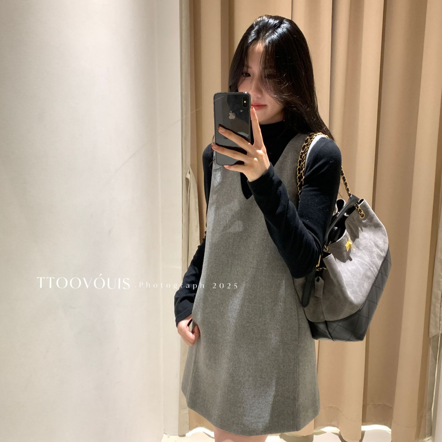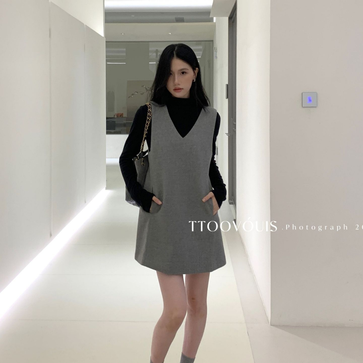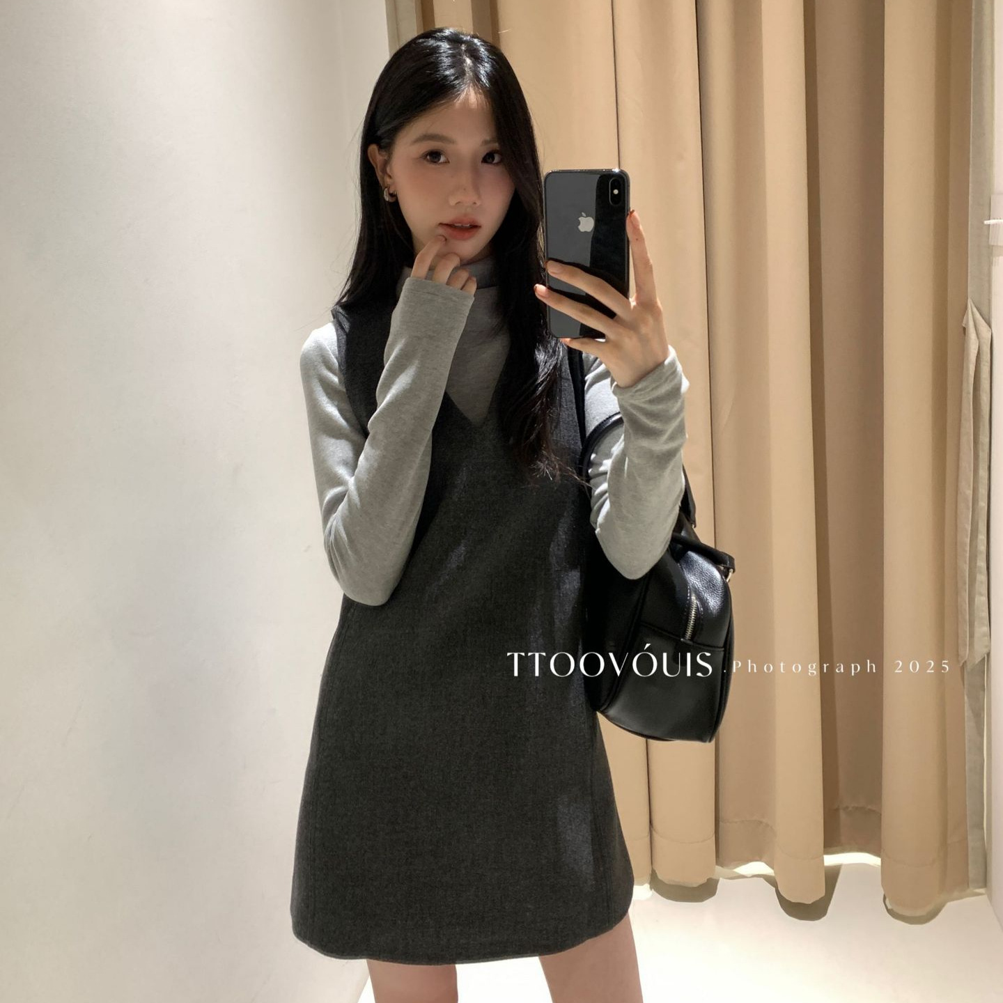 TTOOVOUIS冬季半高领长袖针织衫+a字V领连衣裙气质时尚两件套装女