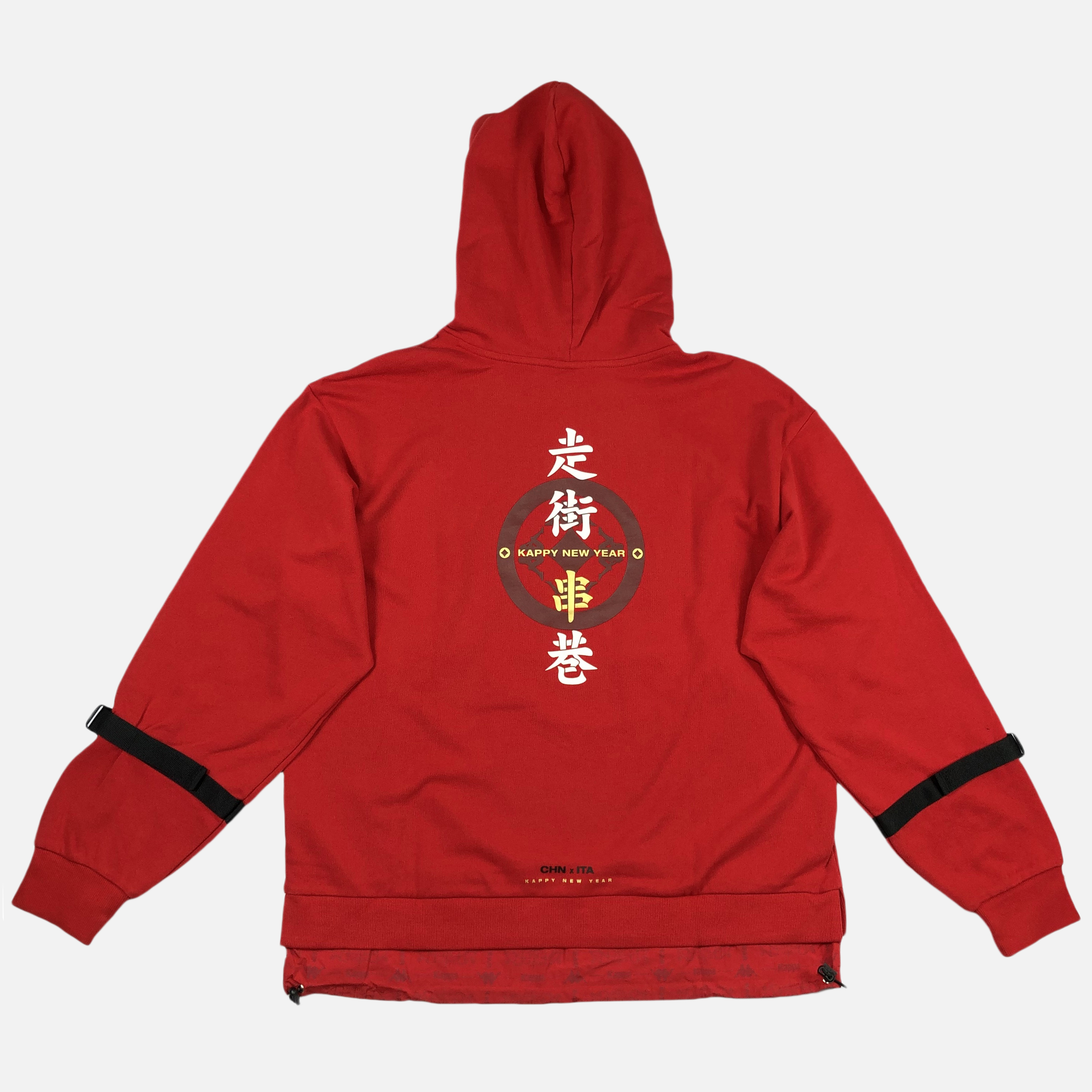 KAPPA卡帕男新年限定针织罗纹连帽刺绣字锁扣拉链卫衣K0A12MT29