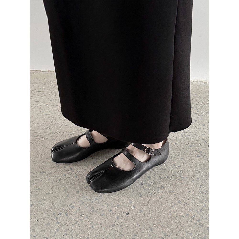 欧洲站复古分趾猪蹄鞋女2026春新款平底一字带设计感单鞋玛丽珍鞋