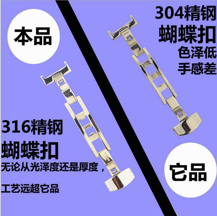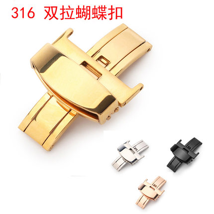 适配浪琴天梭表带蝴蝶扣卡扣配件316L不锈钢双拉蝴蝶扣表带扣表扣