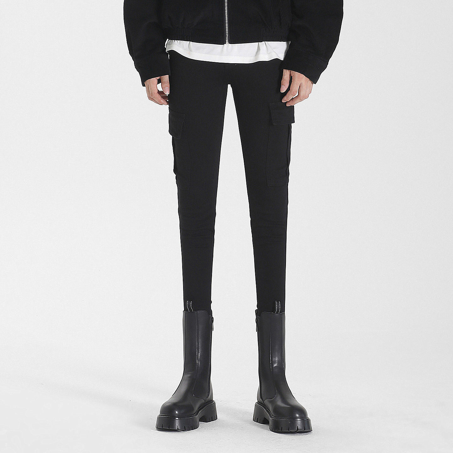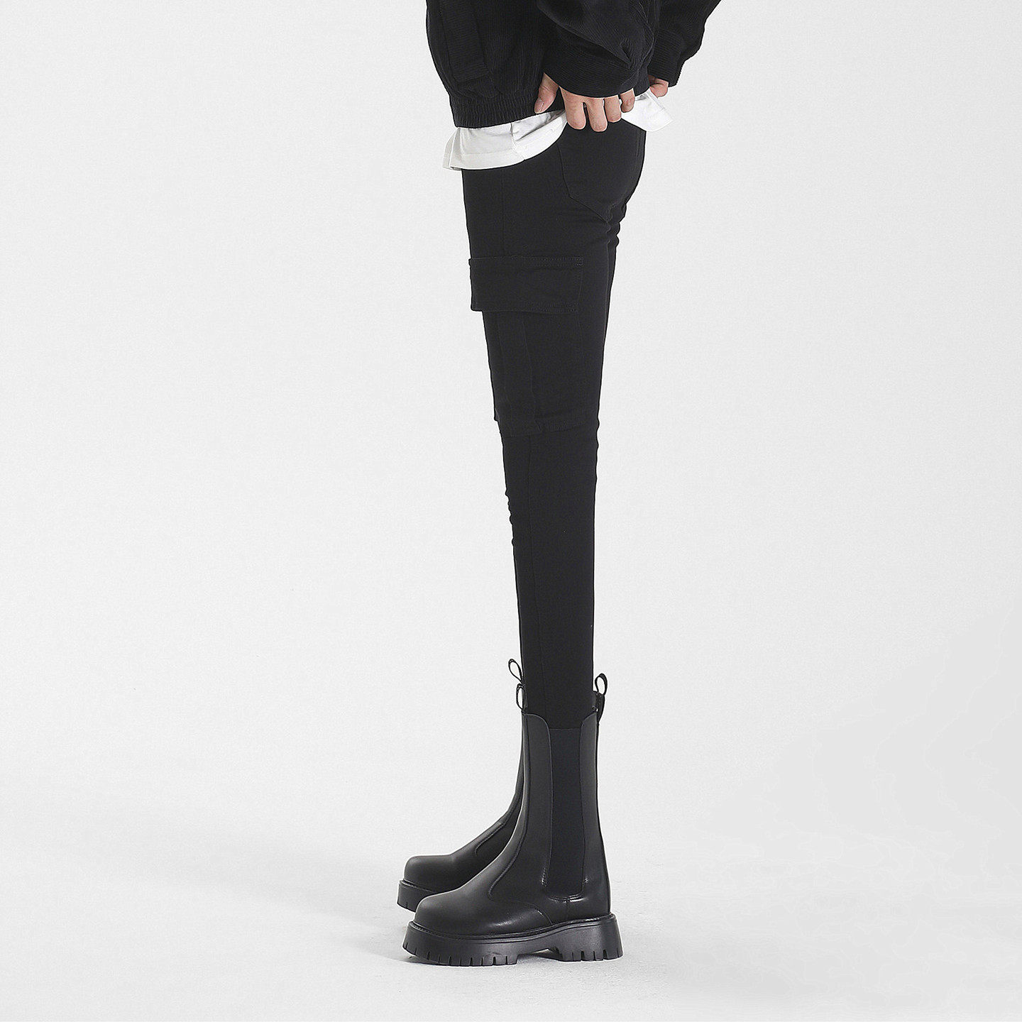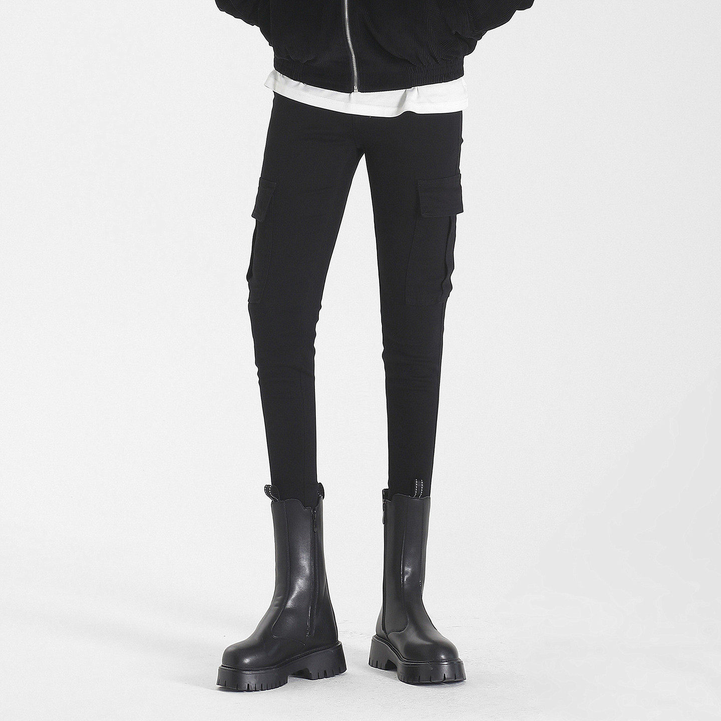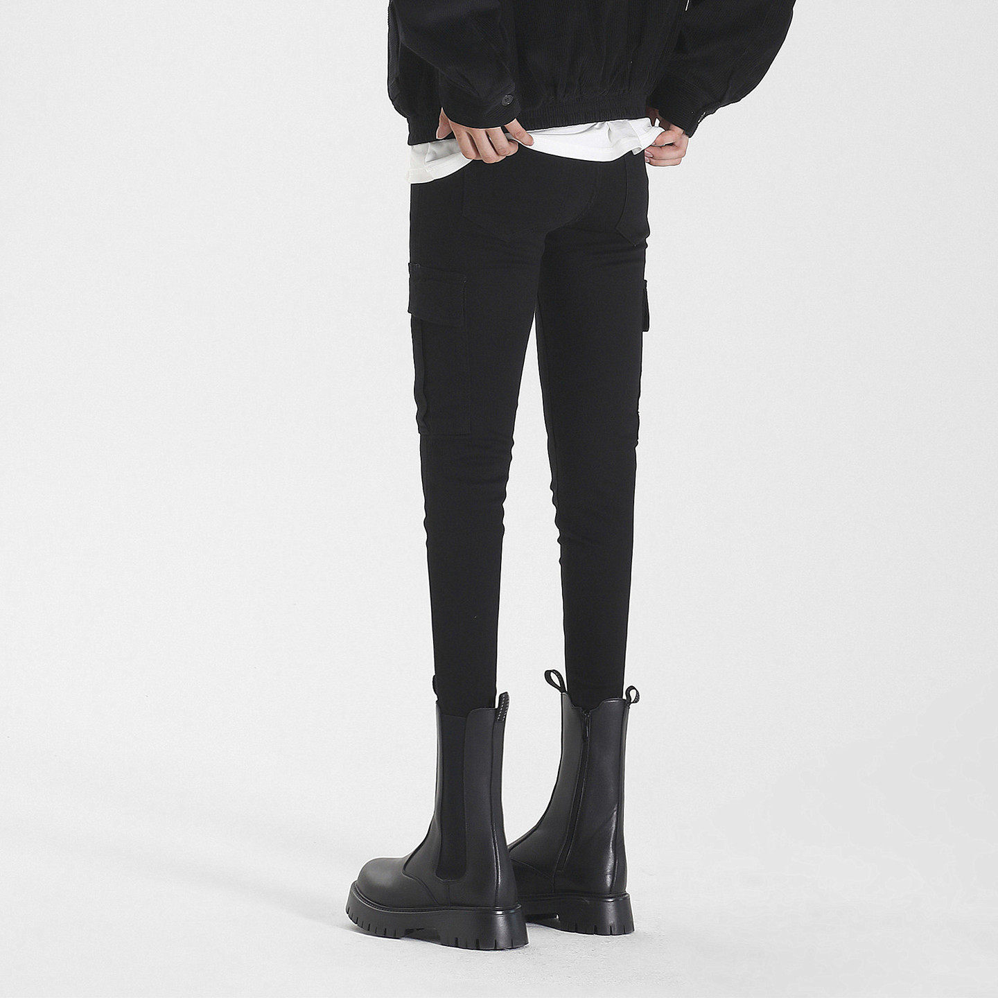 时尚高街纯黑色工装牛仔裤修身小脚裤韩版男弹力休闲多口袋铅笔裤