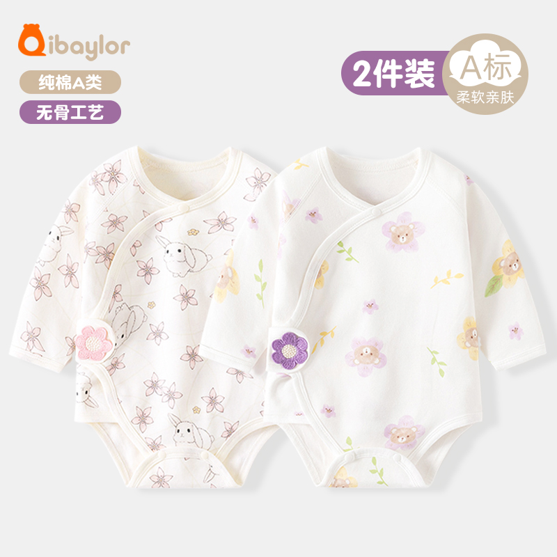 2件装 婴儿包屁衣纯棉春秋冬长袖三角哈衣连体衣初生宝宝睡衣秋装