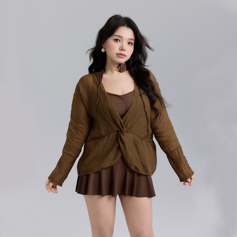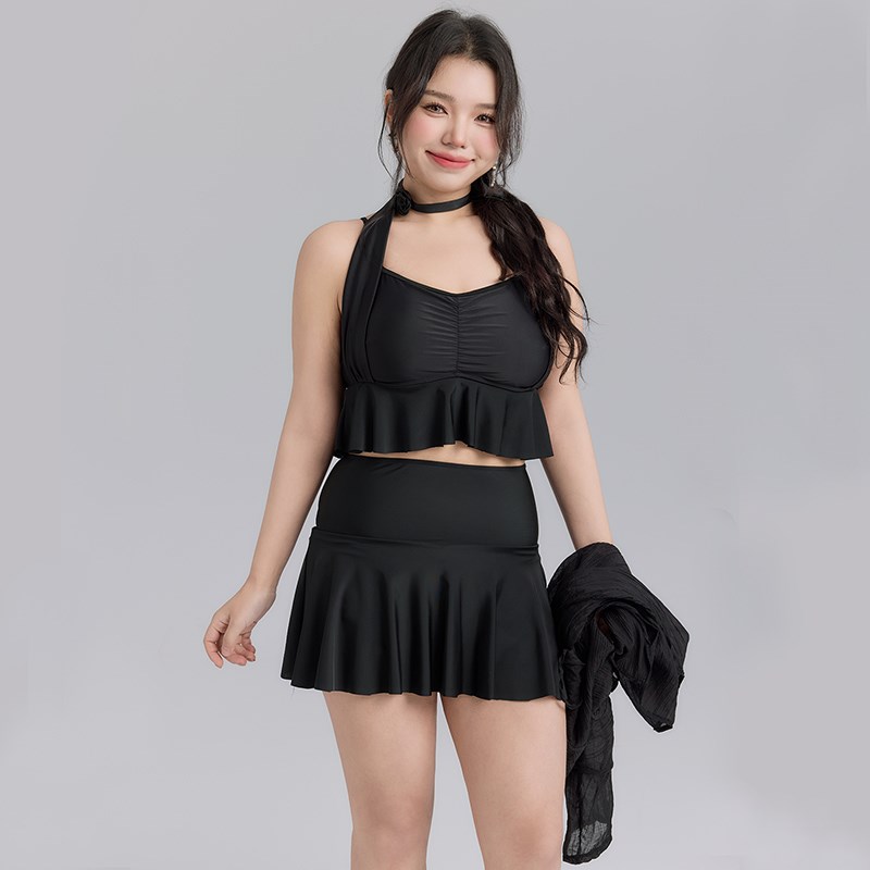 泡温泉度假比基尼三件套罩衫大码泳衣女高腰遮肚子微胖分体游泳衣