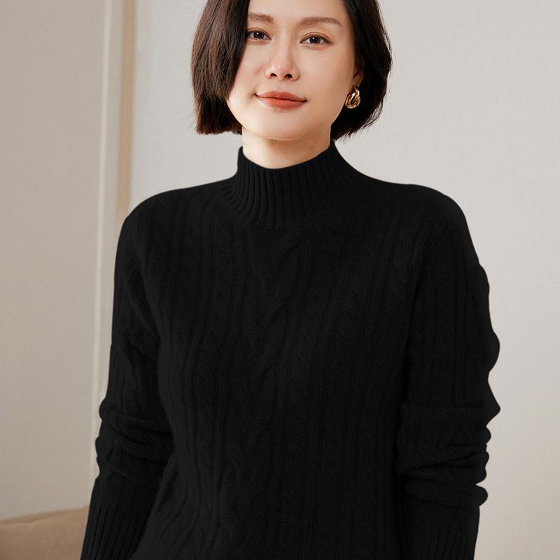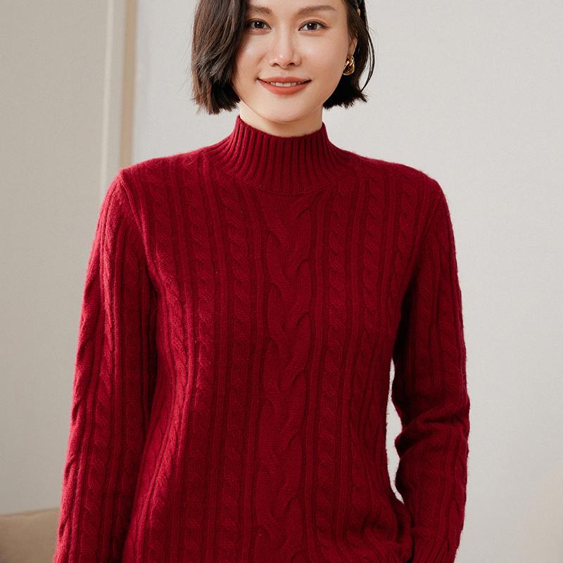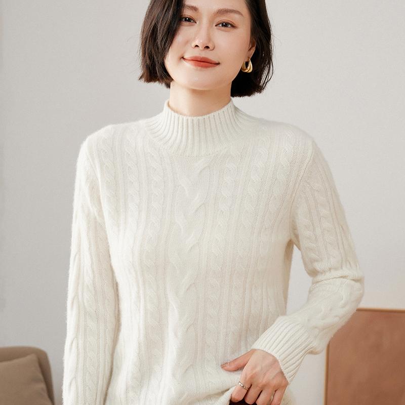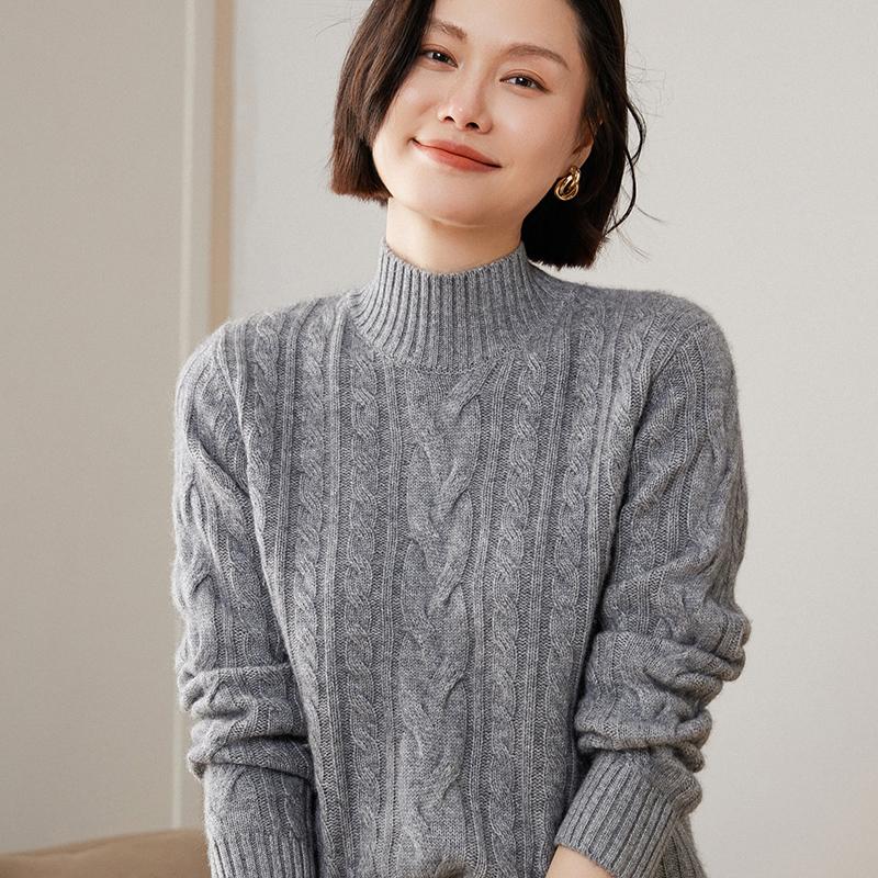 三股加厚姣花羊绒衫女毛衣2025秋冬新款半高领羊毛针织打底衫上衣