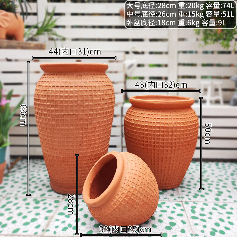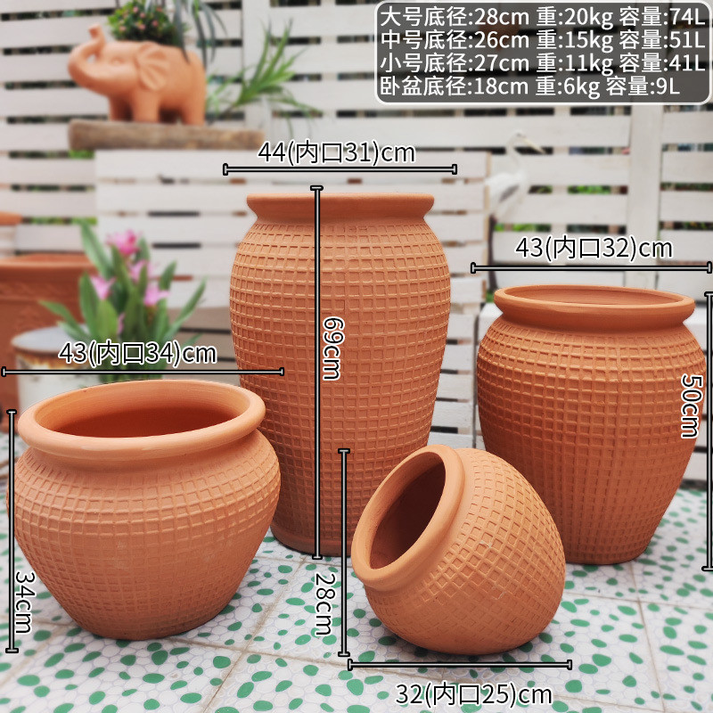 特大号素烧红陶花盆多肉陶罐景观陈设落地大花盆吸水透气包邮盆套
