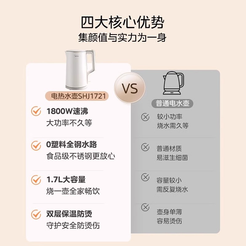 [国补15%]美的1.7L电热水壶1721