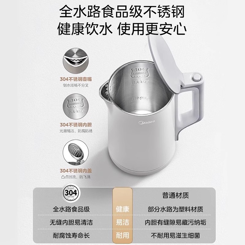 美的烧水壶家用恒温保温一体不锈钢自动泡茶专用大容量电热开水器