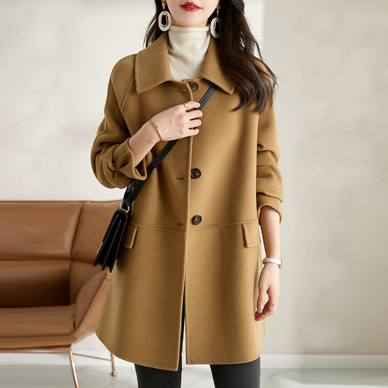 酒红色短款毛呢外套女秋冬装韩系大码胖MM加厚新年小个子呢子大衣