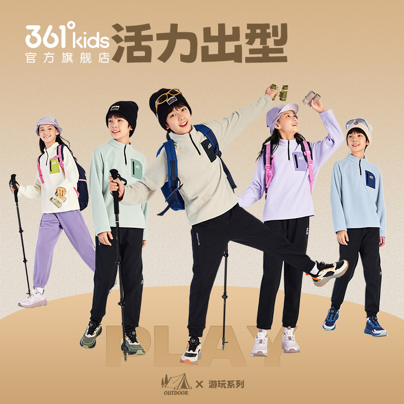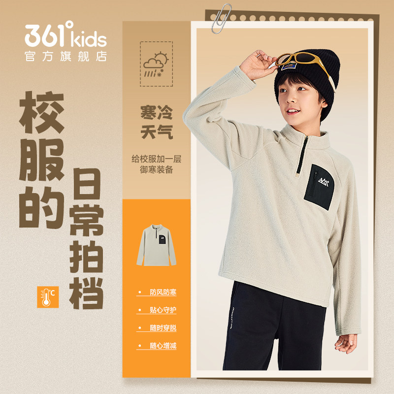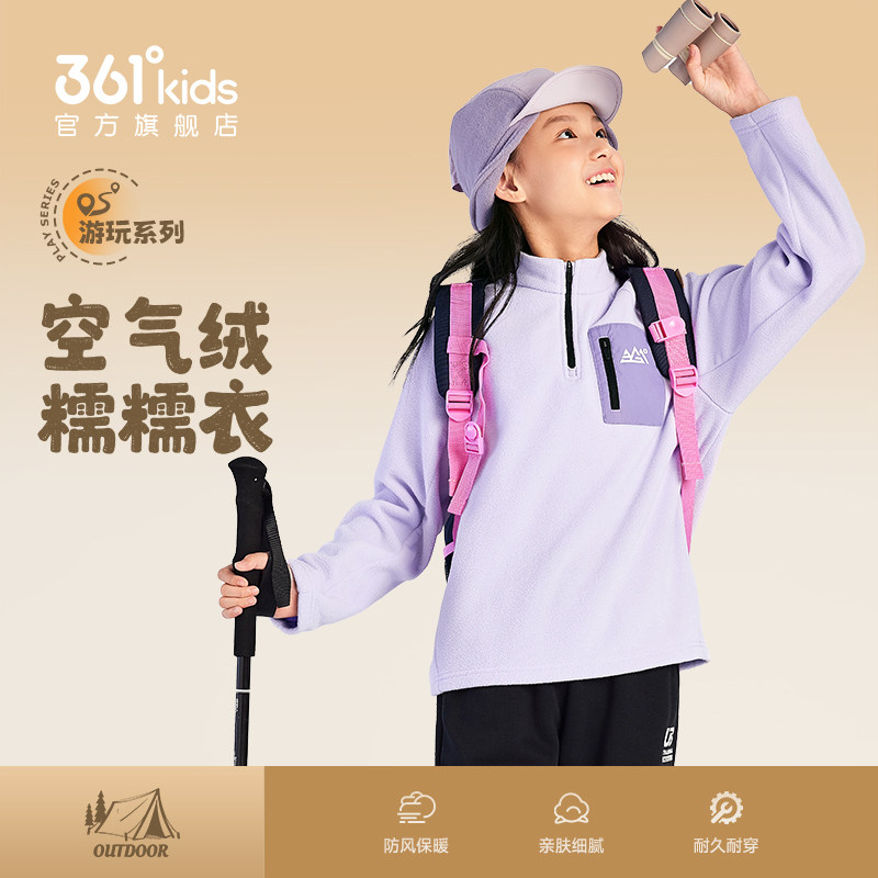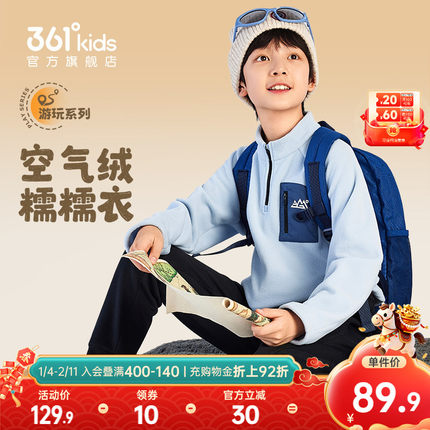 361°童装男女童加绒加厚儿童套头卫衣2025冬季新款中大童上衣