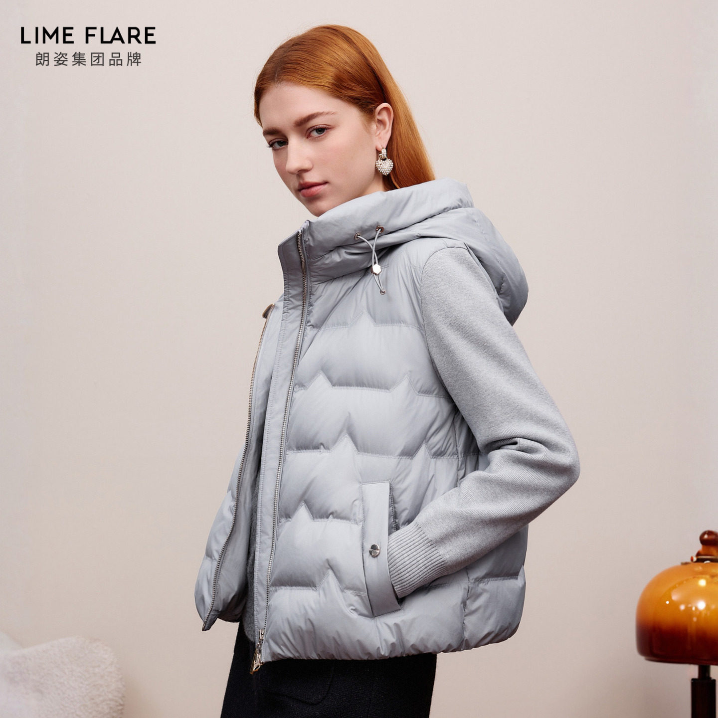 【鹅绒】朗姿/莱茵福莱尔羽绒服女短款小个子针织拼接轻薄外套冬