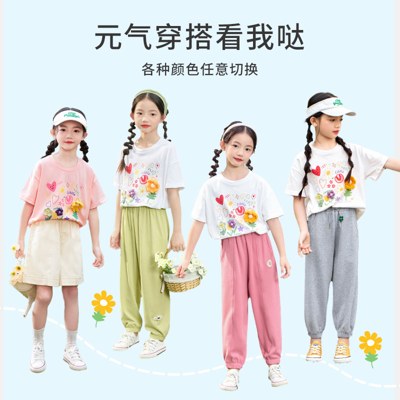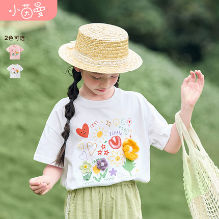 茵曼童装女童纯棉短袖t恤夏季儿童中大童女宝宝立体花半袖上衣潮
