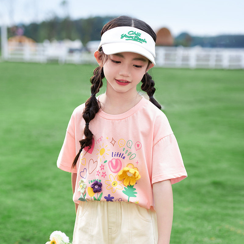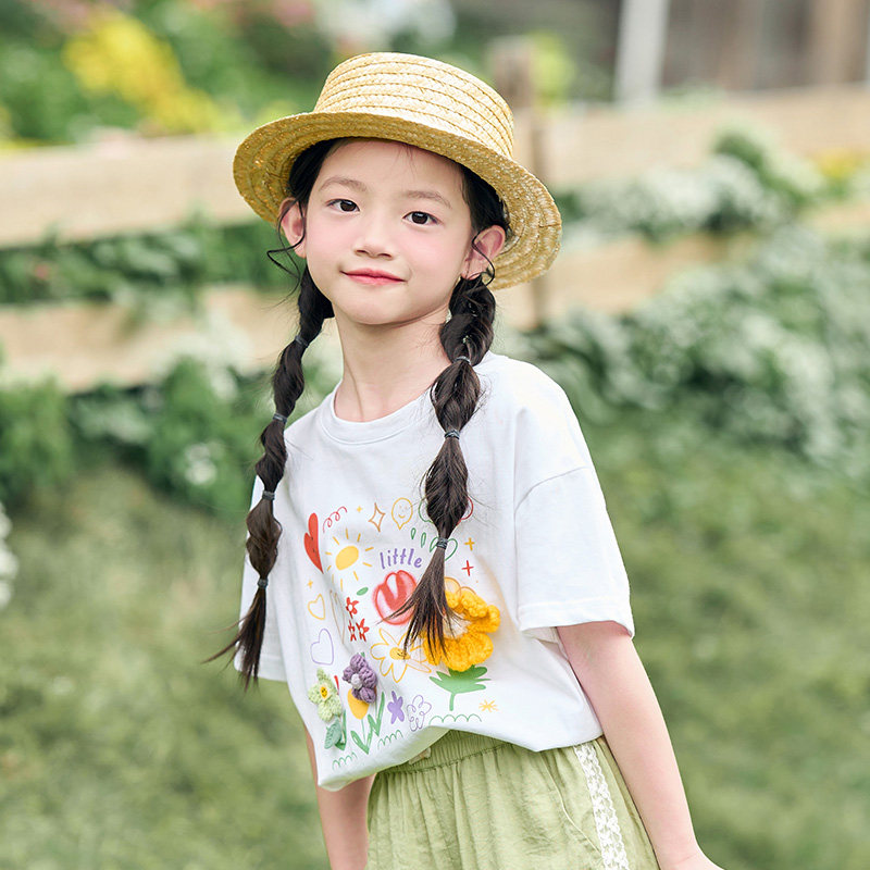茵曼童装女大童立体印花短袖T恤