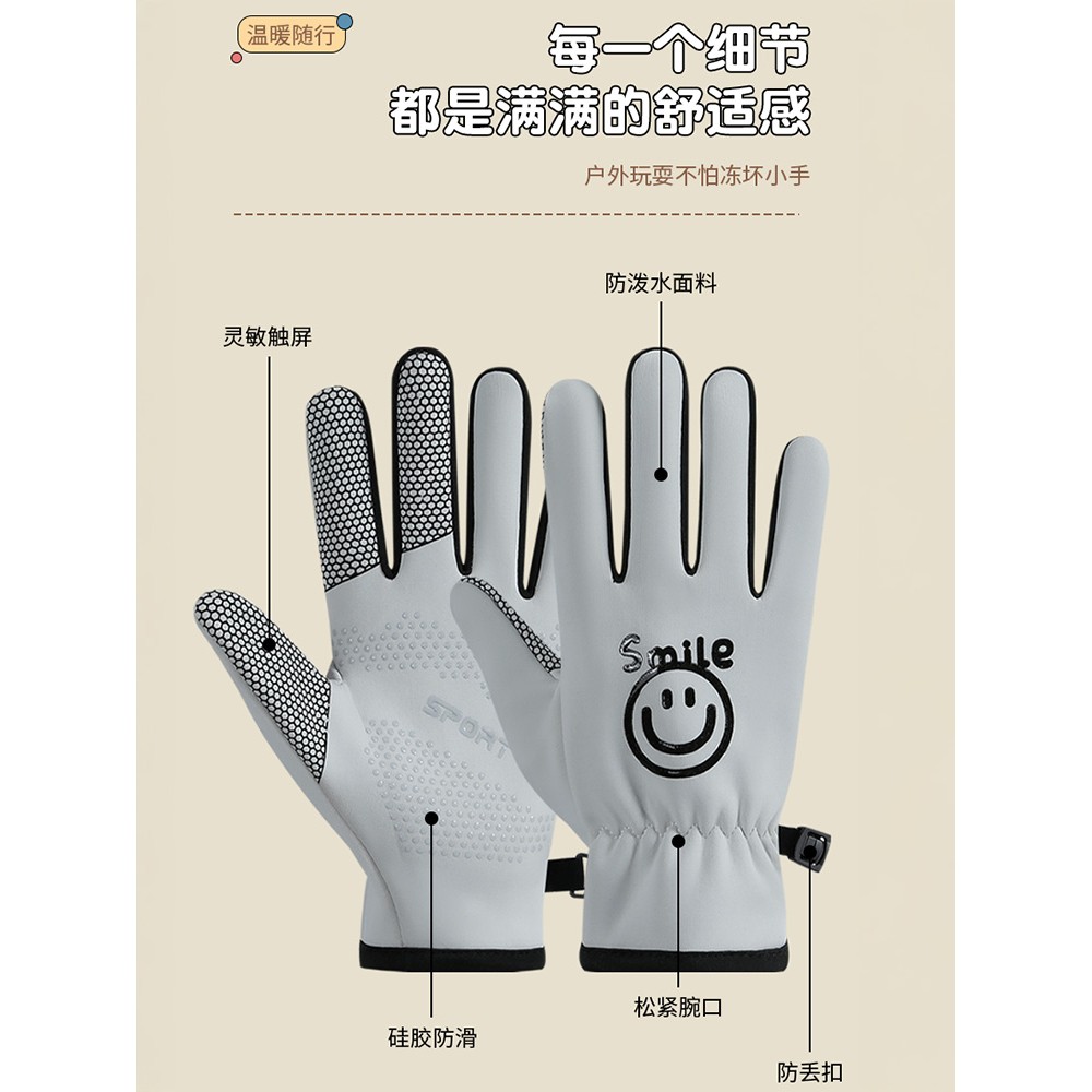 儿童骑行手套男孩防风防水加绒保暖冬季防寒全指触屏男童骑车大童