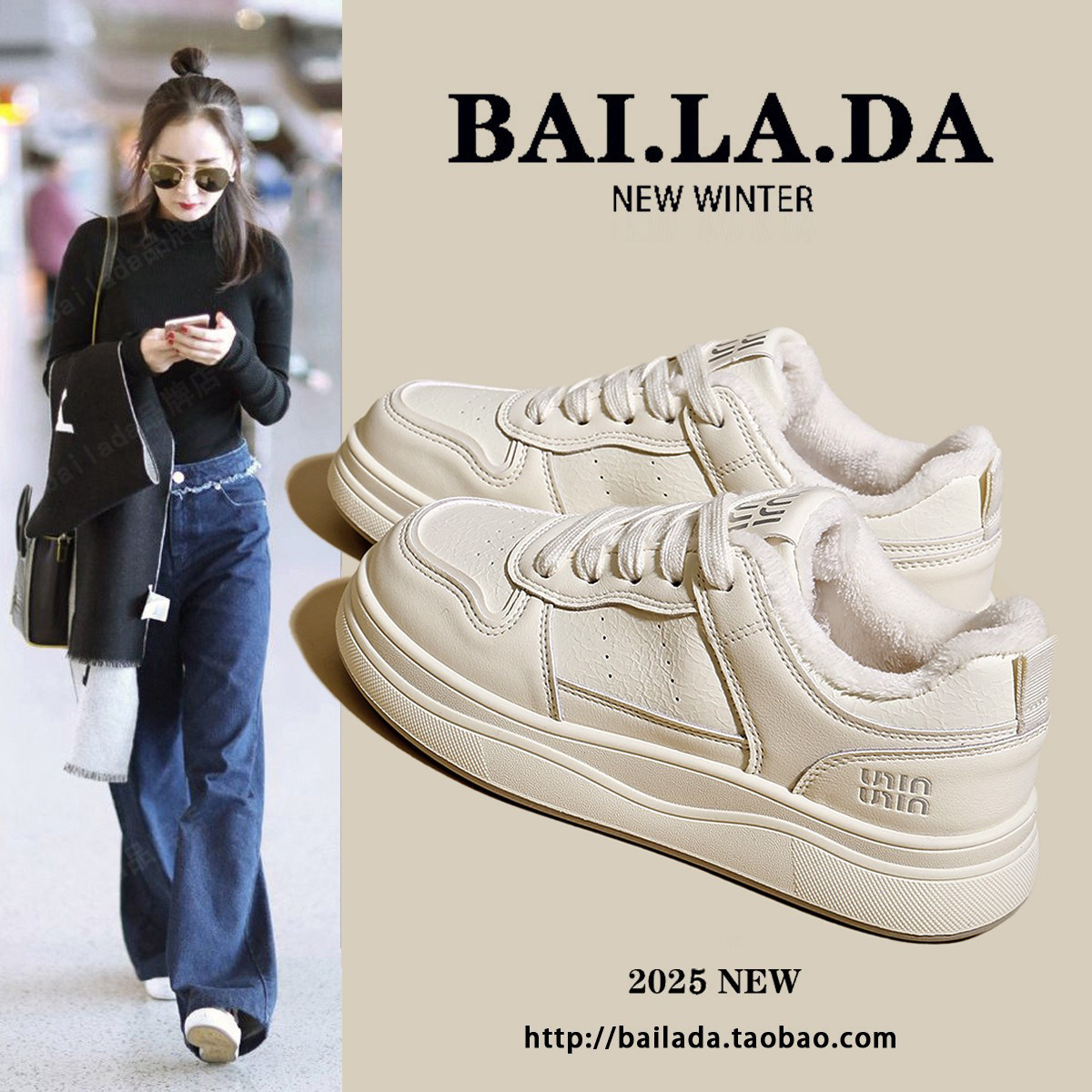 爆款加绒小白女鞋女款2025冬季新款百搭厚底休闲板鞋白鞋冬款棉鞋