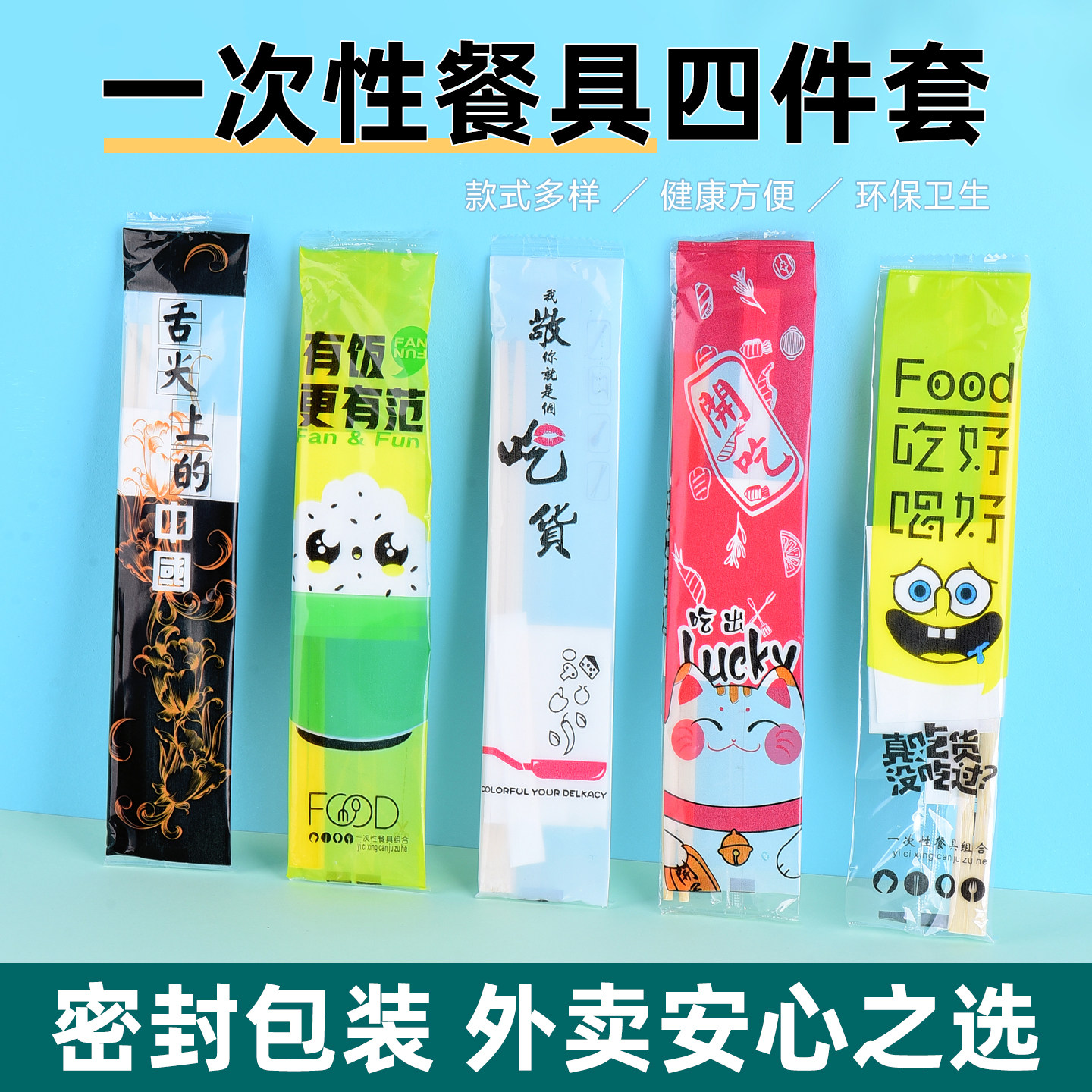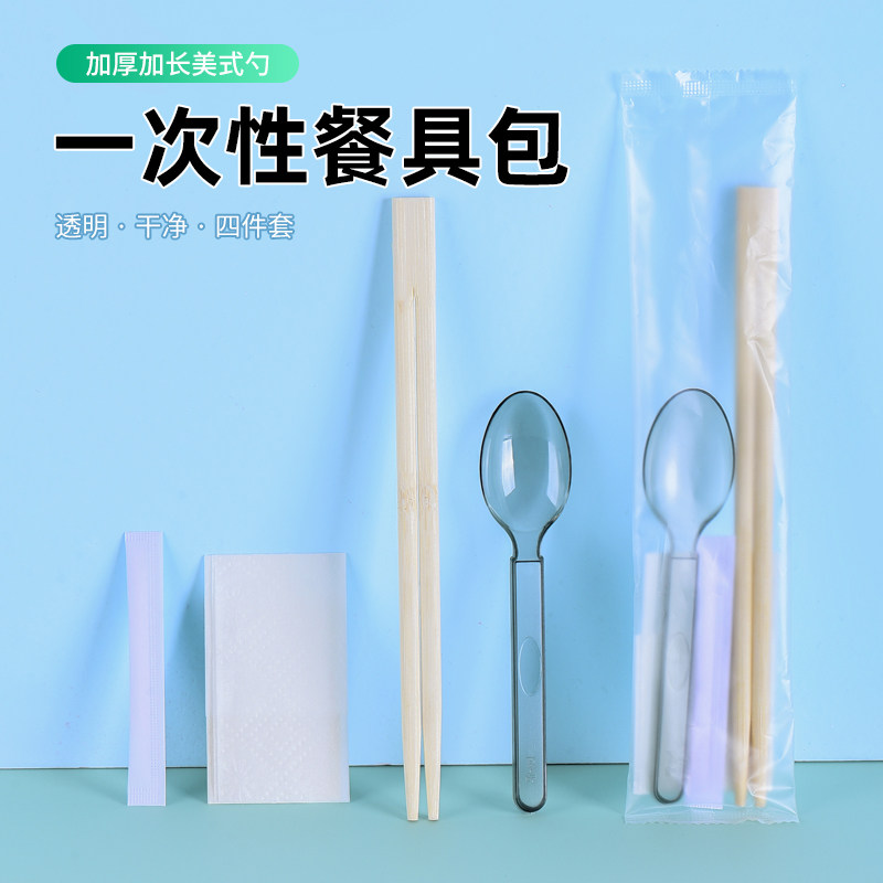 一次性筷子四件套美式勺子套装外卖快餐打包三件套商用土豪勺餐具
