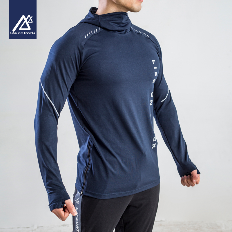 健身衣服男春秋长袖速干上衣跑步运动套装晨跑服连帽训练服卫衣