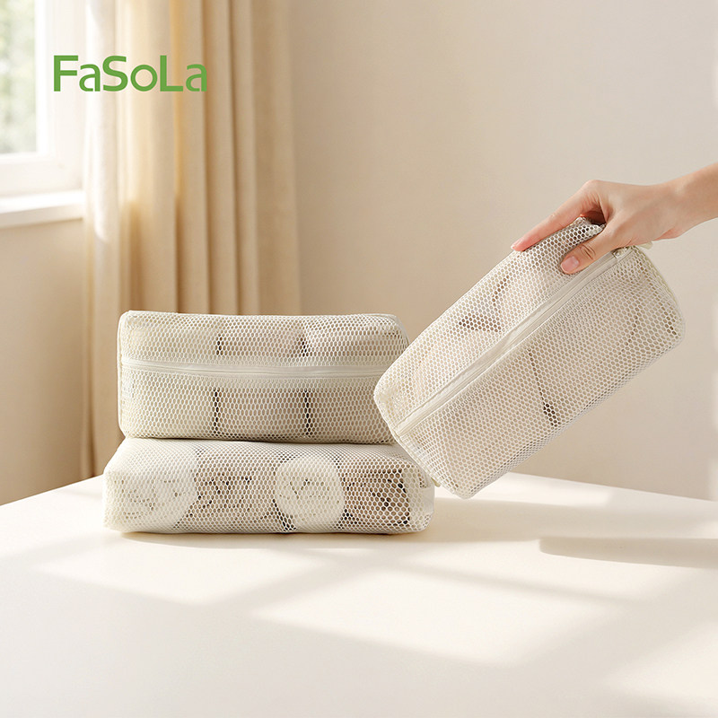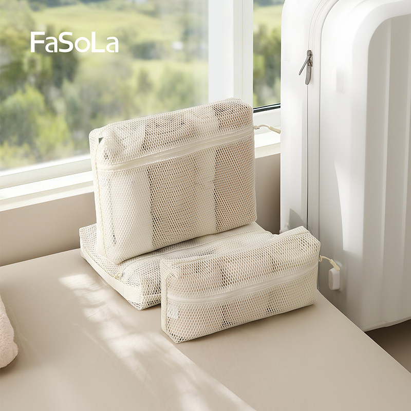 FaSoLa旅行收纳包化妆包网格收纳袋便携式外出透明网纱速干洗漱包