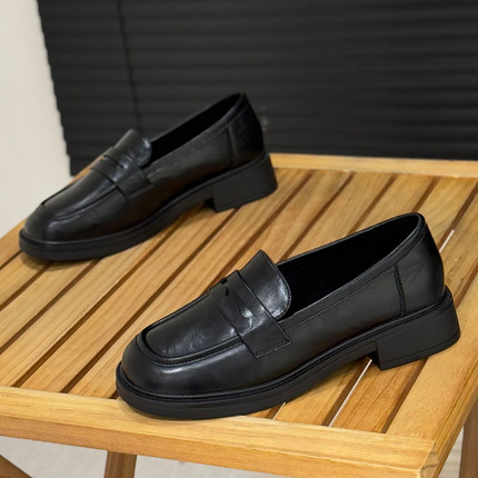 英伦风小皮鞋女2025年新款圆头黑色jk制服工作鞋一脚蹬乐福鞋单鞋