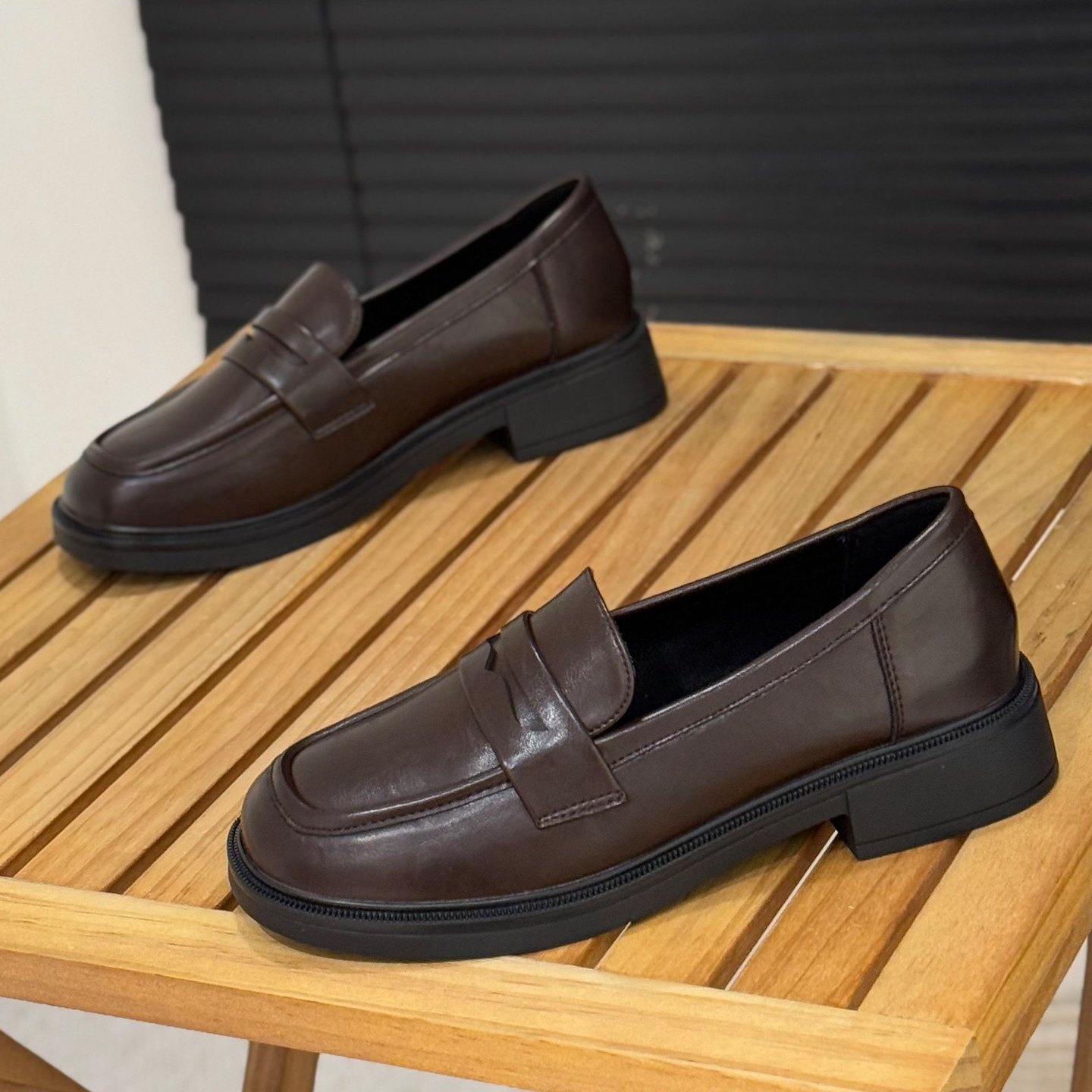 英伦风粗跟乐福鞋一脚蹬懒人单鞋