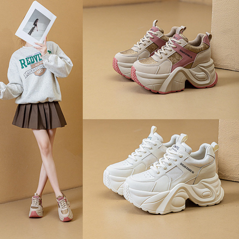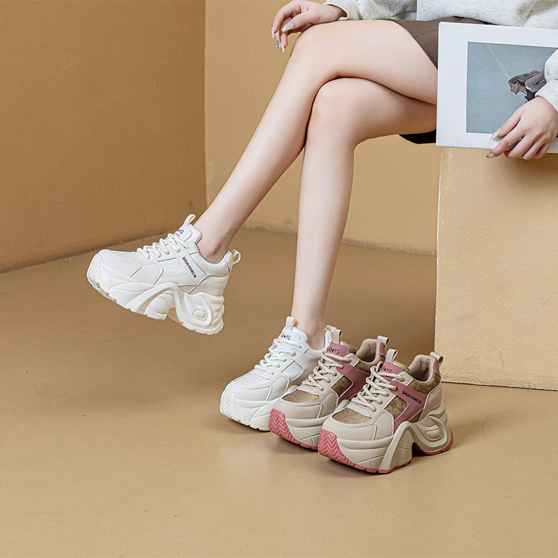爆款真皮拼色老爹鞋女