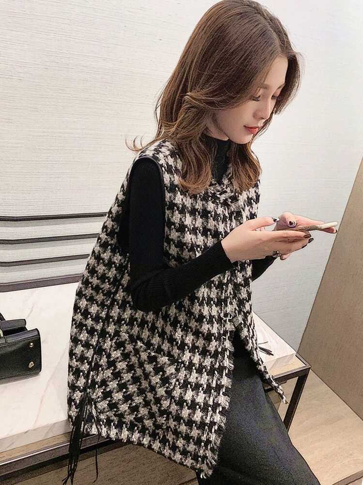 千鸟格马甲背心女外穿2025春秋新款韩版坎肩马夹外套女百搭显瘦
