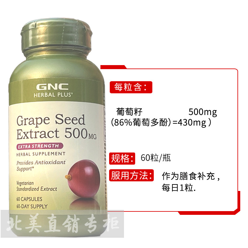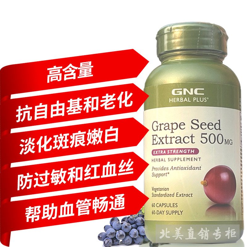 保税美国GNC高含量葡萄籽多酚500mg60粒粉胶囊原花青素精华提取物