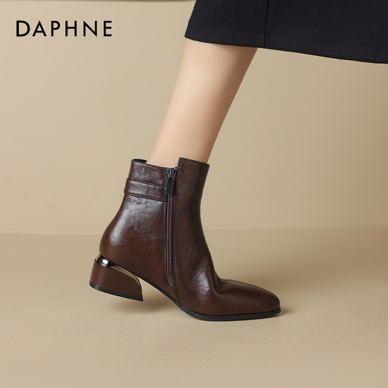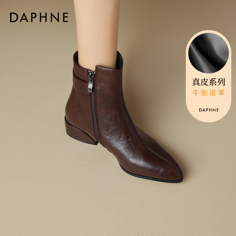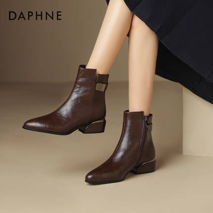 达芙妮尖头粗跟短靴女冬季马丁靴