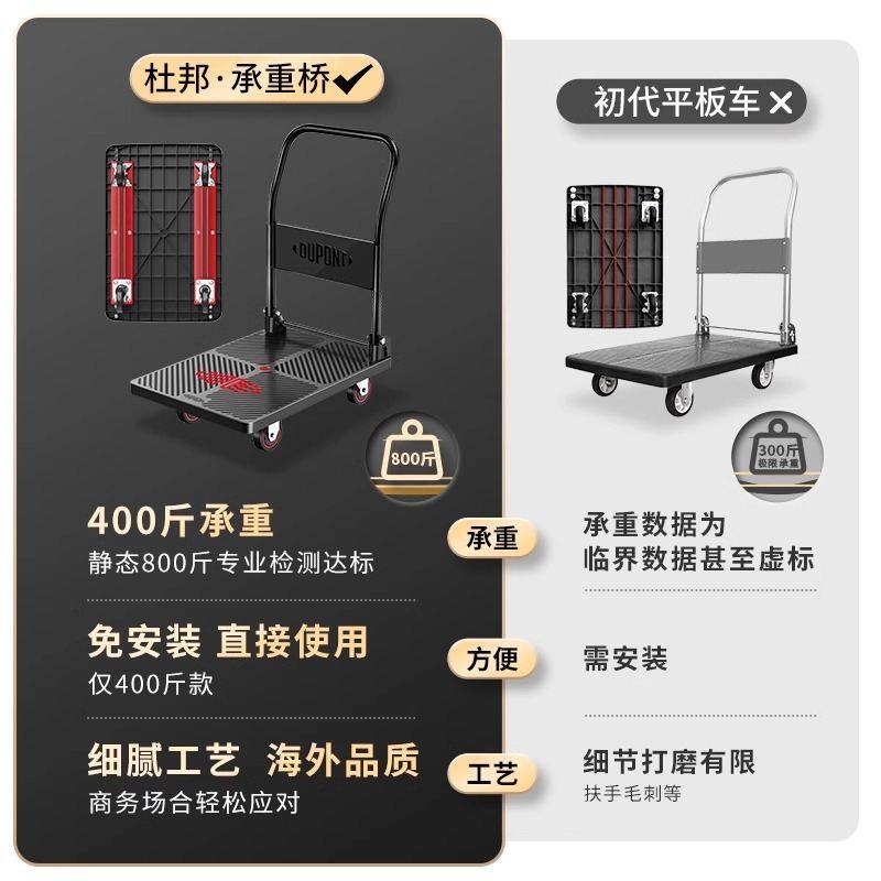 杜邦平板车小推车折叠便携家用板车拉货拖车快递搬运车静音手推车